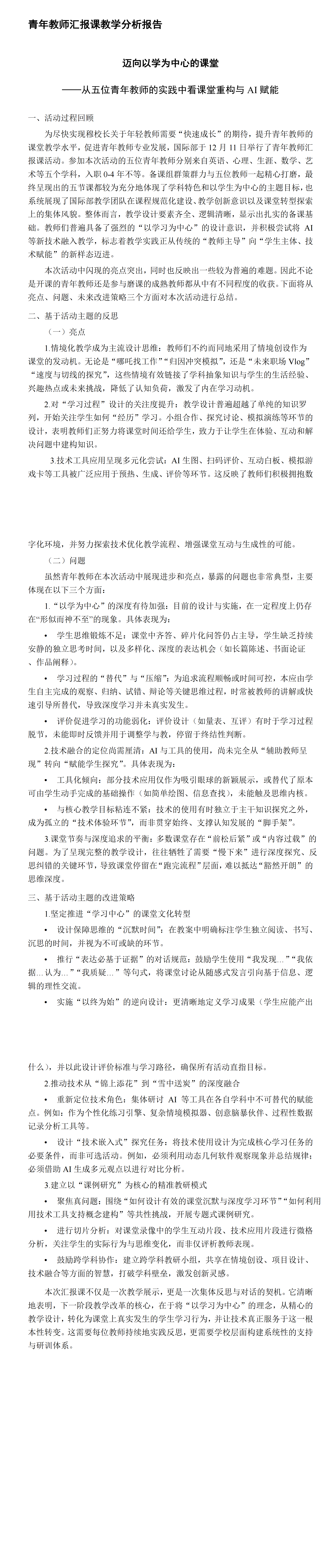 2025-2026学年度第一学期国际部青年教师汇报课教学分析报告