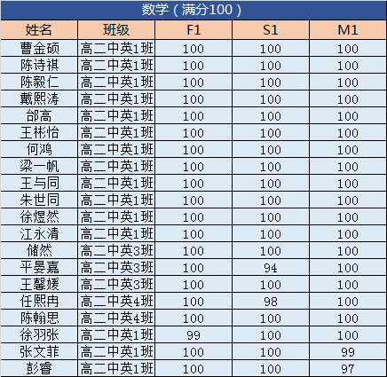 高二年级数学F1达A率90%!其中中英1班F1,S1达A率为100%,40人取得了S1满分💯,28人取得了F1满分💯的好成绩!