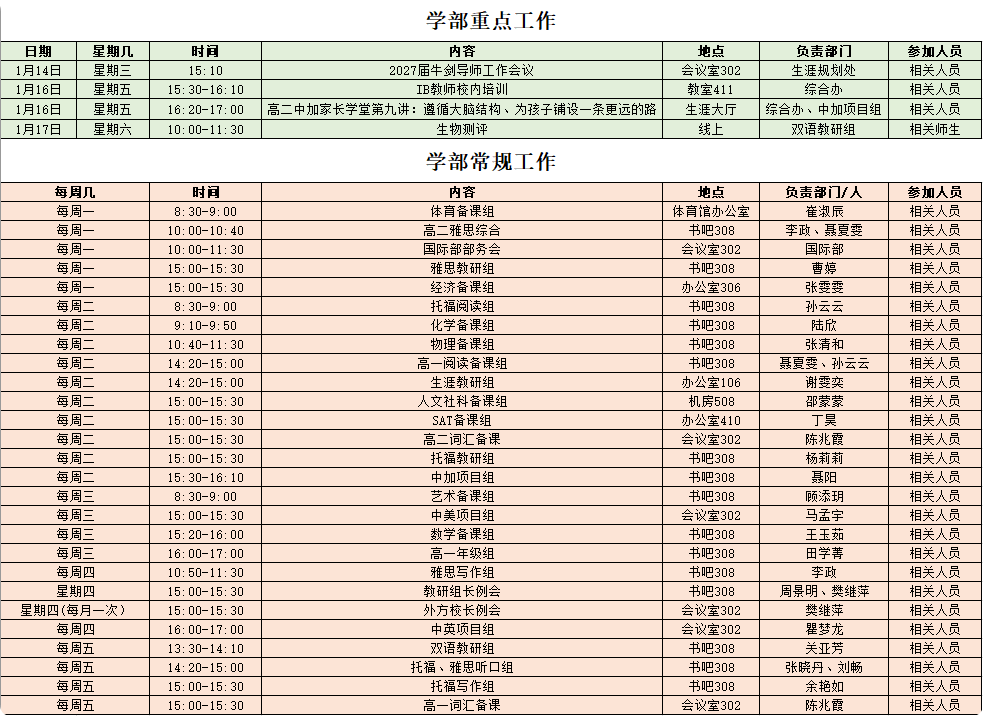 2025-2026第一学期第14周工作安排