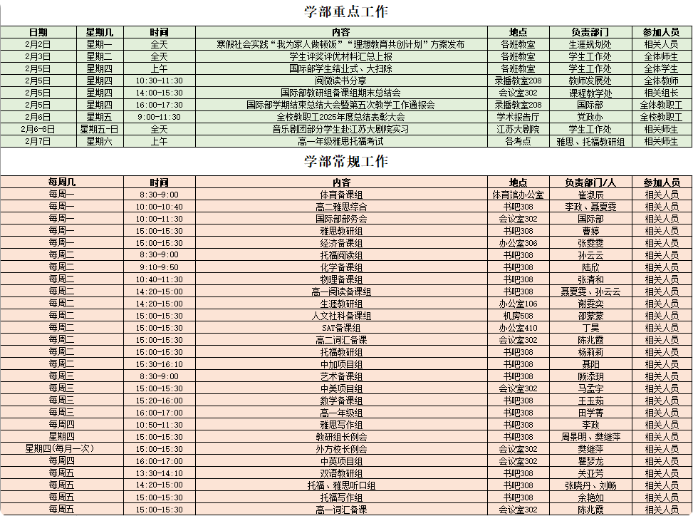 2025-2026第二学期第2周工作安排