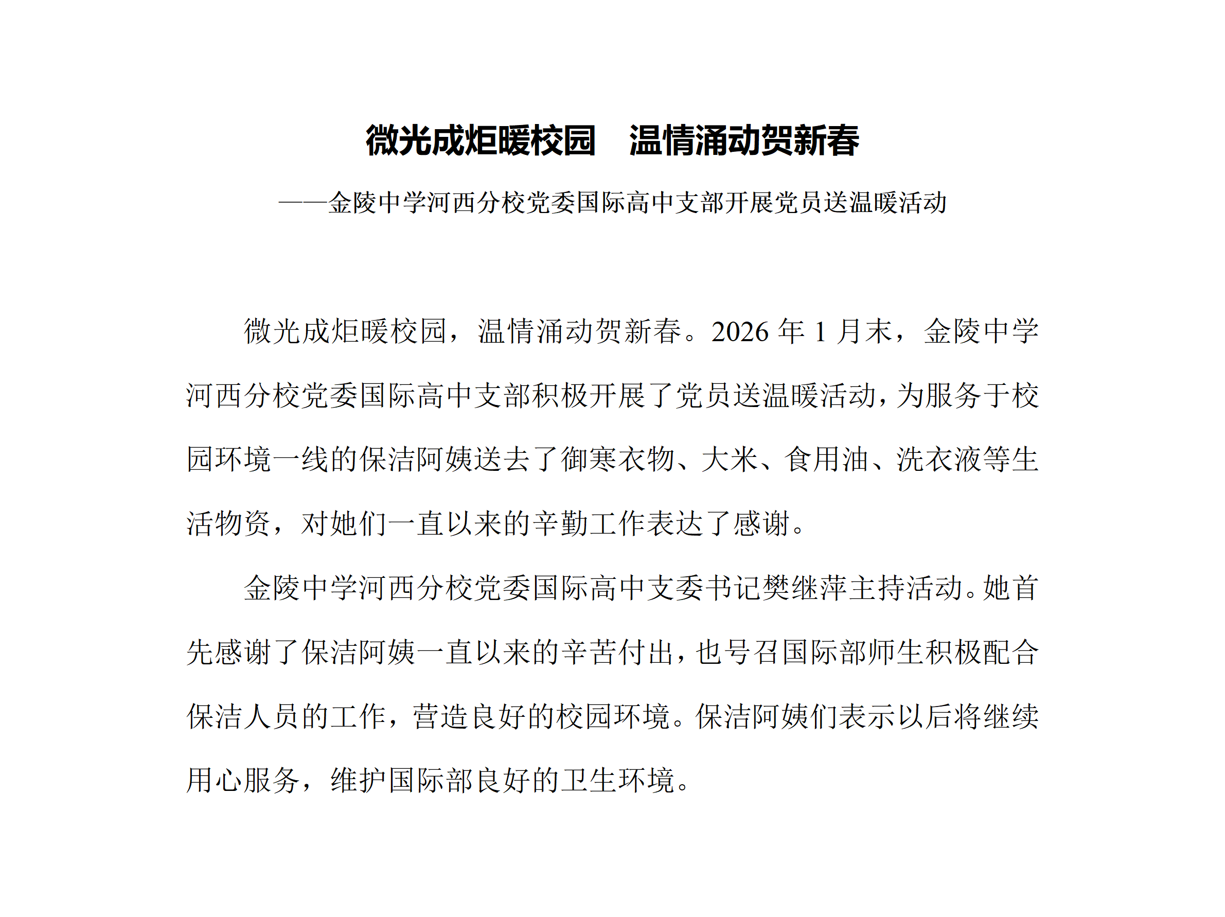 国际高中党员教师开展2026新春送温暖活动!
