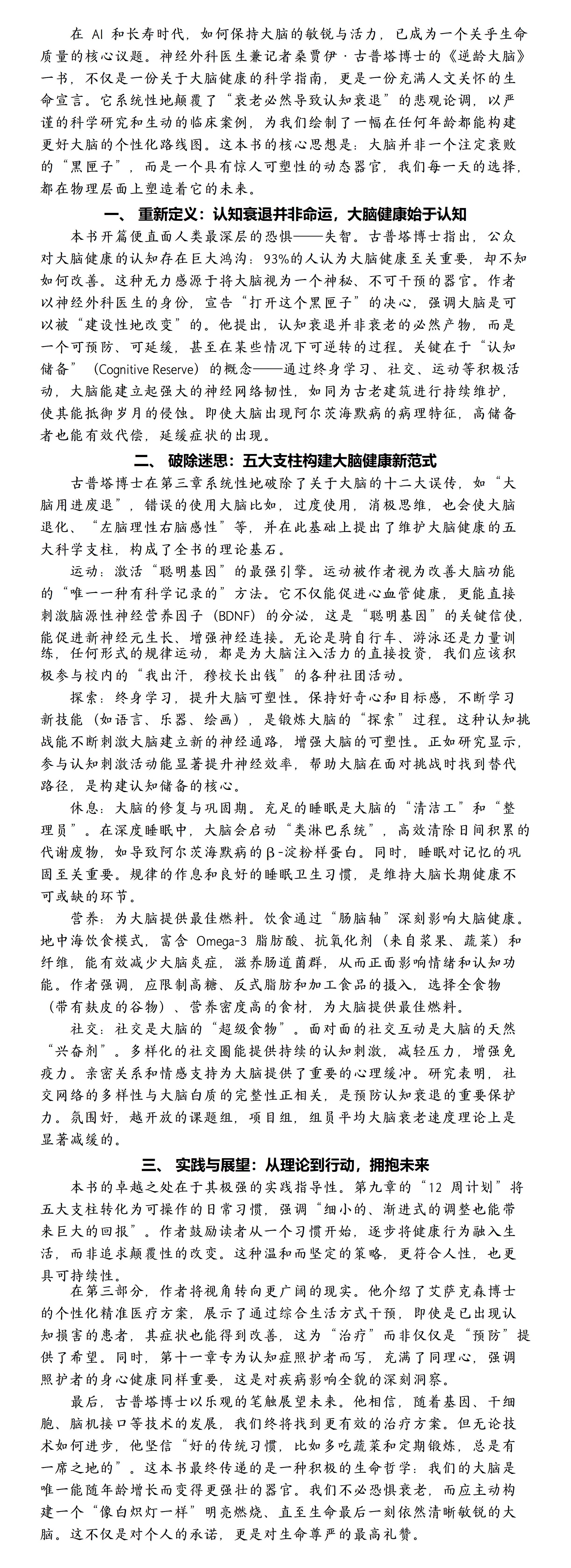 赵晨初老师读《逆龄大脑》:重塑认知,构建更敏锐的自我
