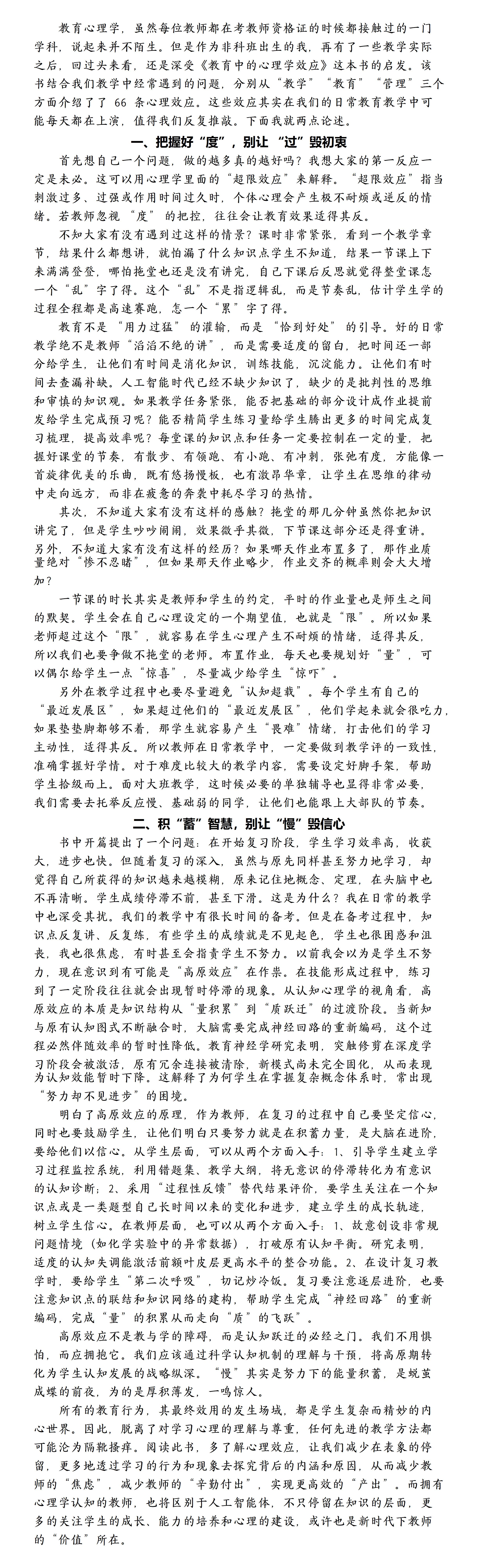 戴慧敏老师读《教育中的心理学效应》:少即多、慢即快