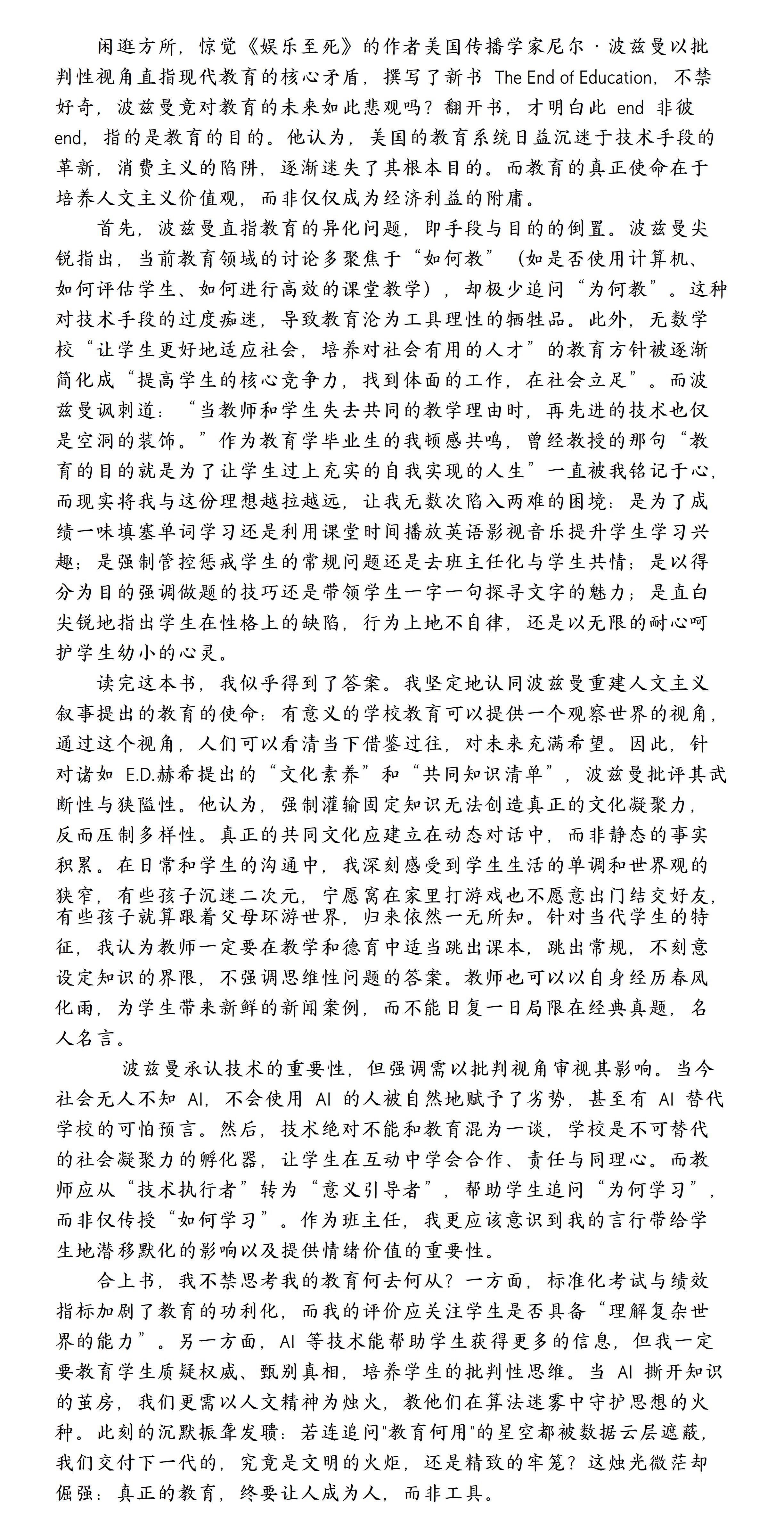 芦宛玥老师读《教育何用》:重思教育的本质与未来