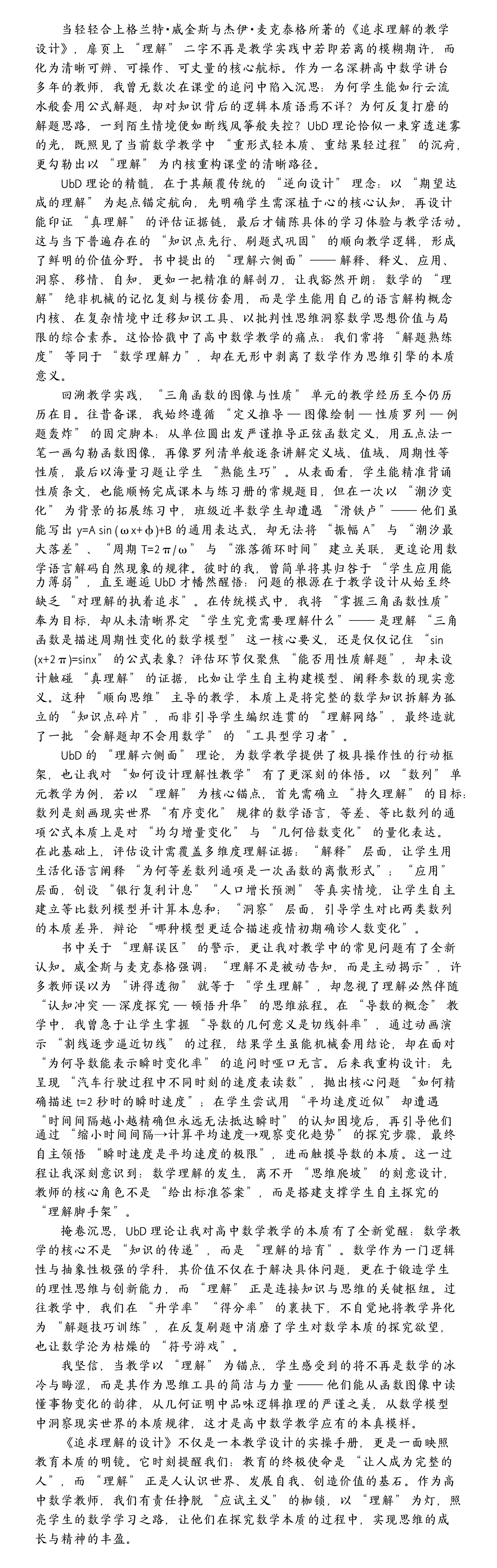 王玉茹老师读《追求理解的教学设计》:重构高中数学教学