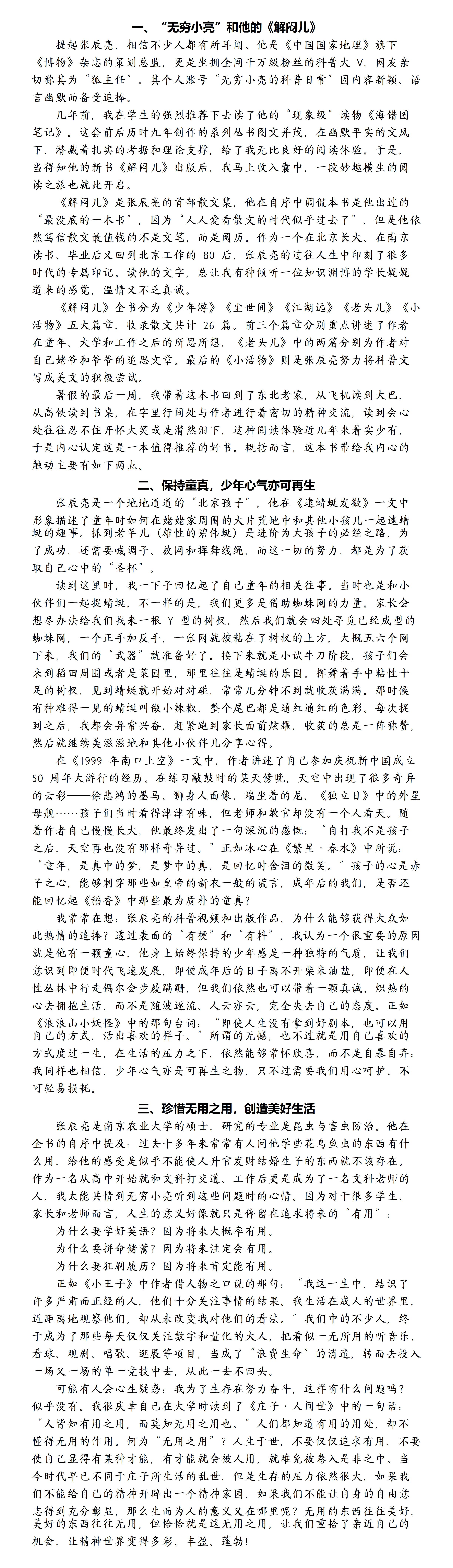 张威老师读《解闷儿》:拥抱“无用之用”的诸多美好
