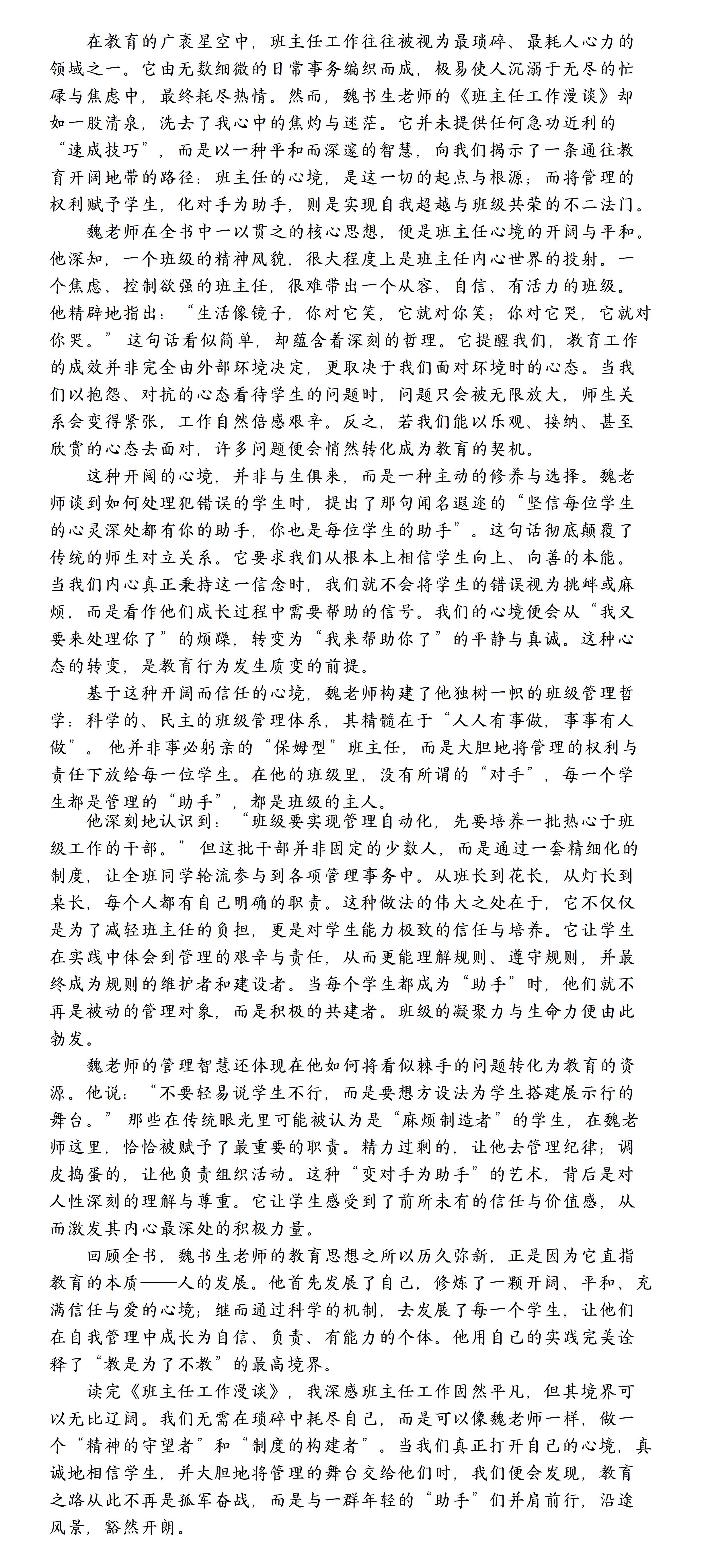 聂夏雯老师读魏书生《班主任工作漫谈》:于平凡处见辽阔