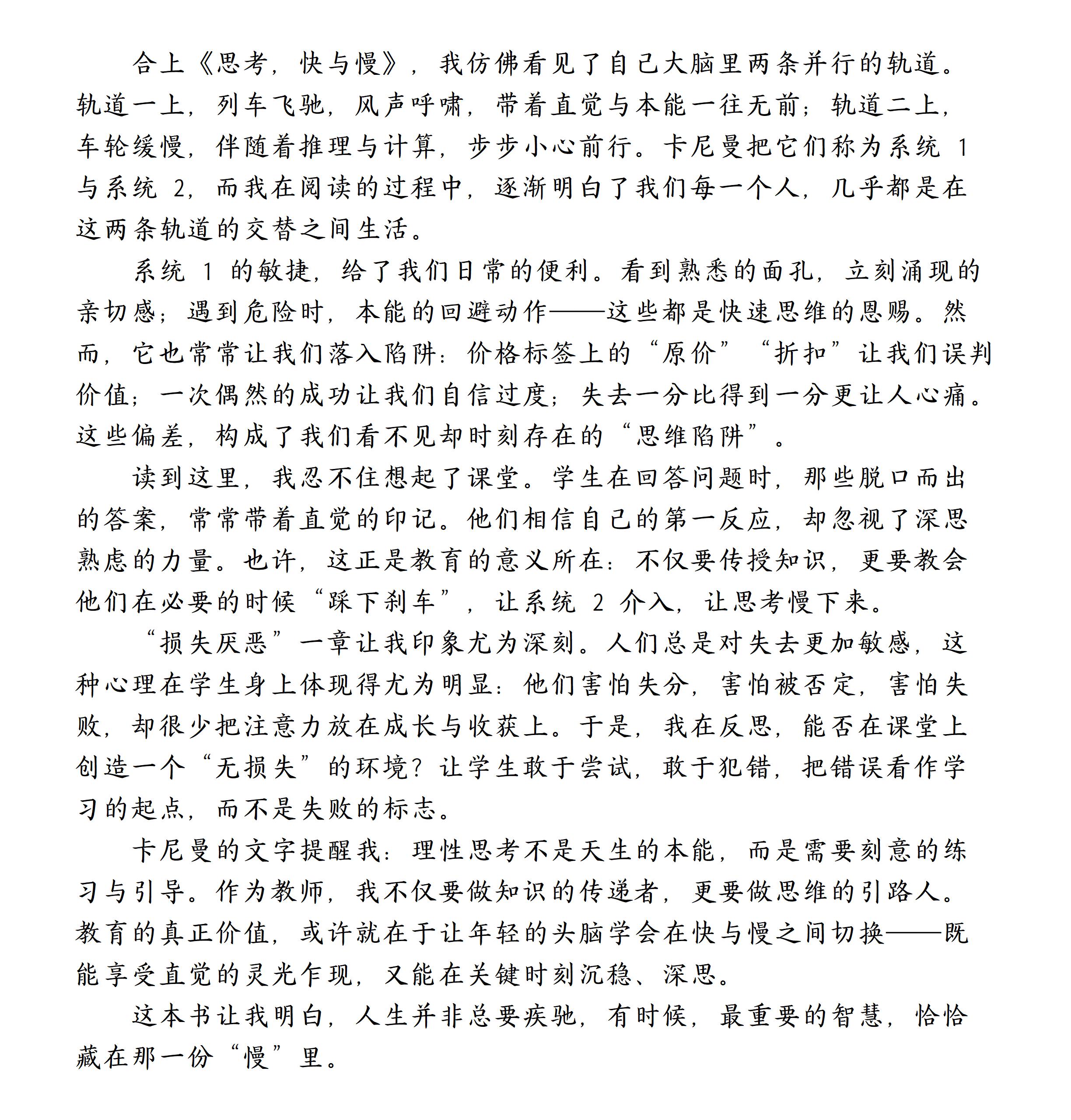 汪秋雨老师读《思考,快与慢》:人生并非总要疾驰