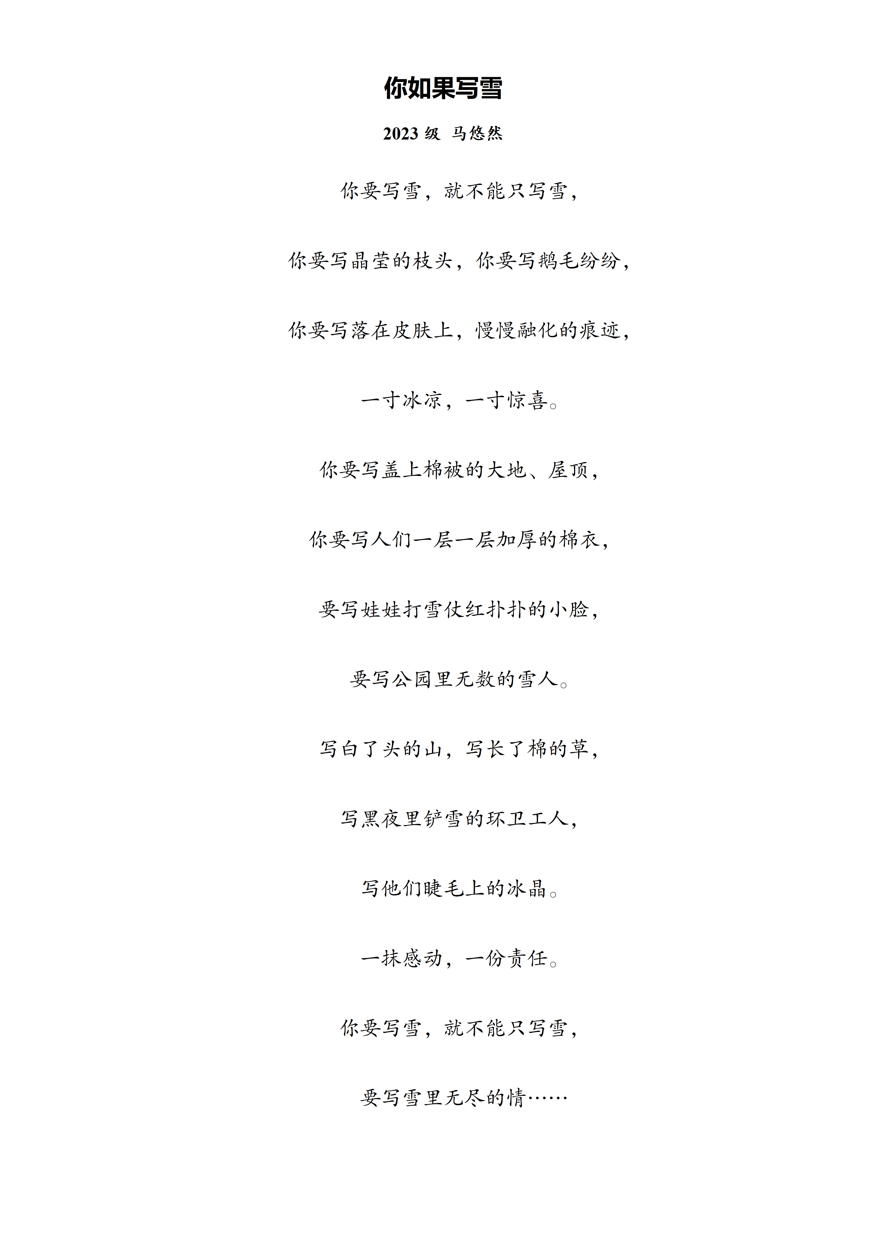 【学生佳作】马悠然:《你如果写雪》
