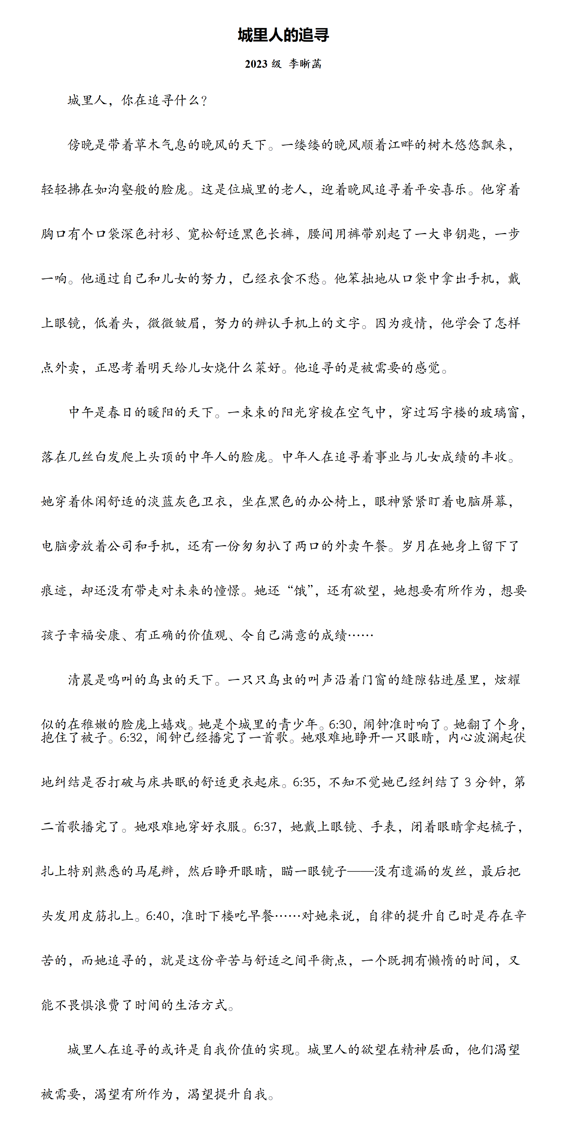 【学生佳作】李晰菡:《城里人的追寻》