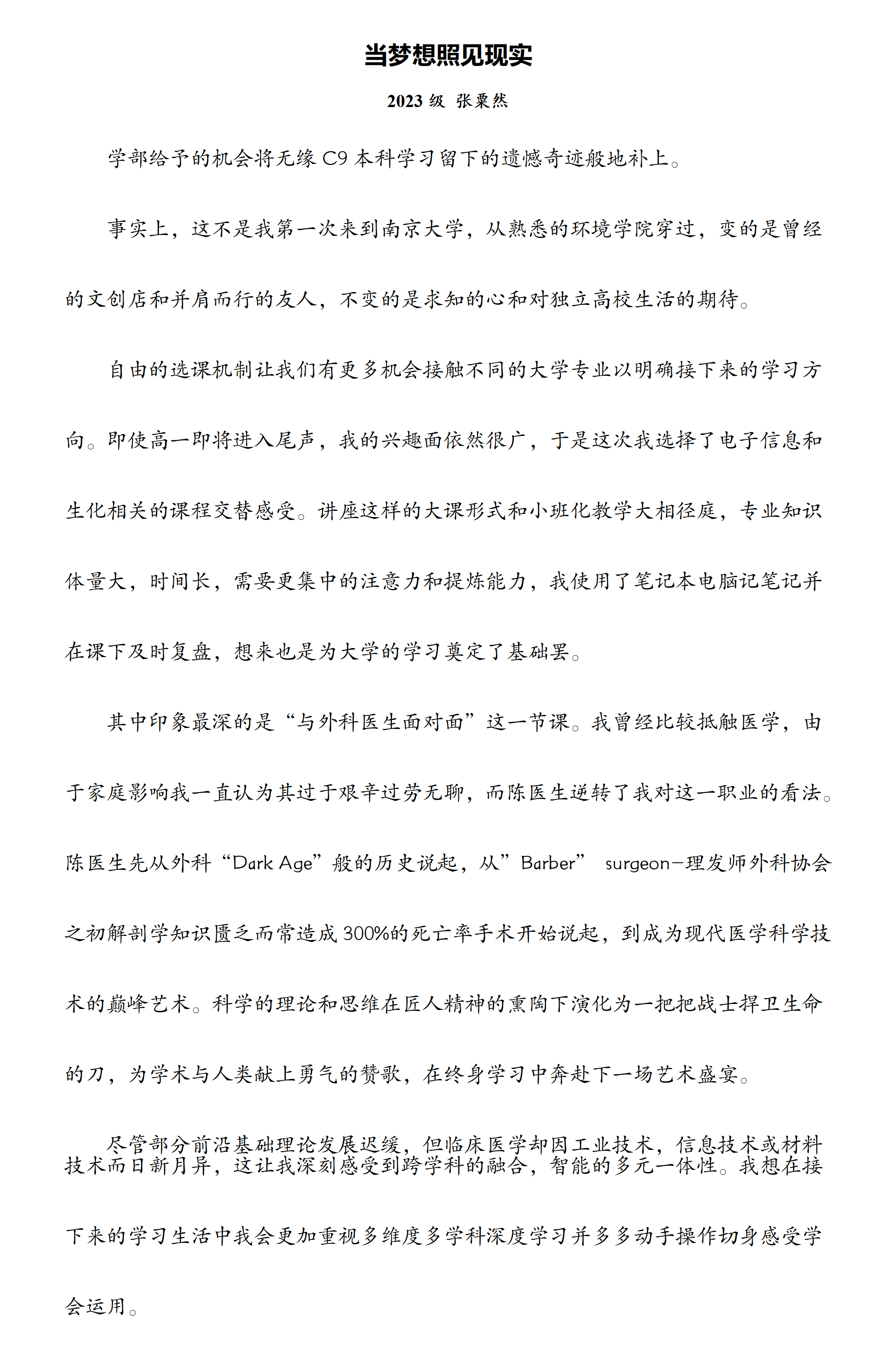 【学生佳作】张粟然:《当梦想照见现实》