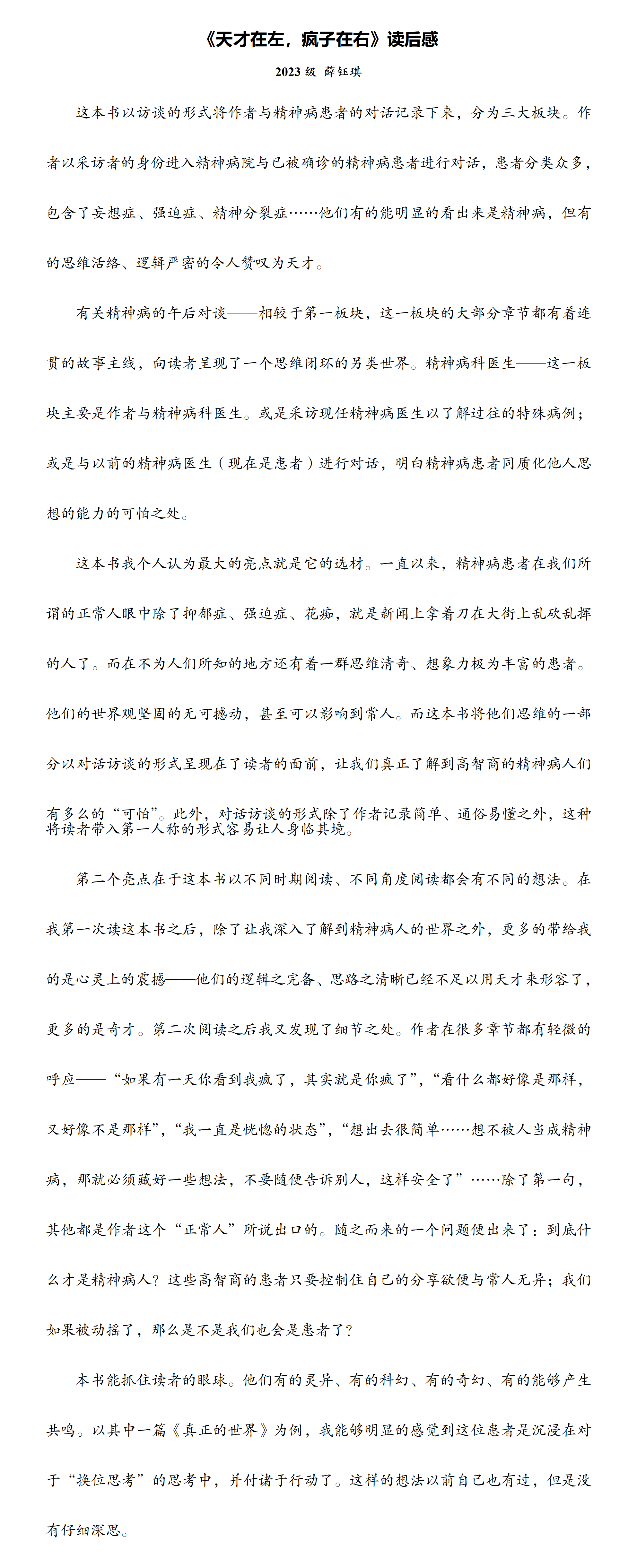 【学生佳作】薛钰琪:《天才在左,疯子在右》读后感