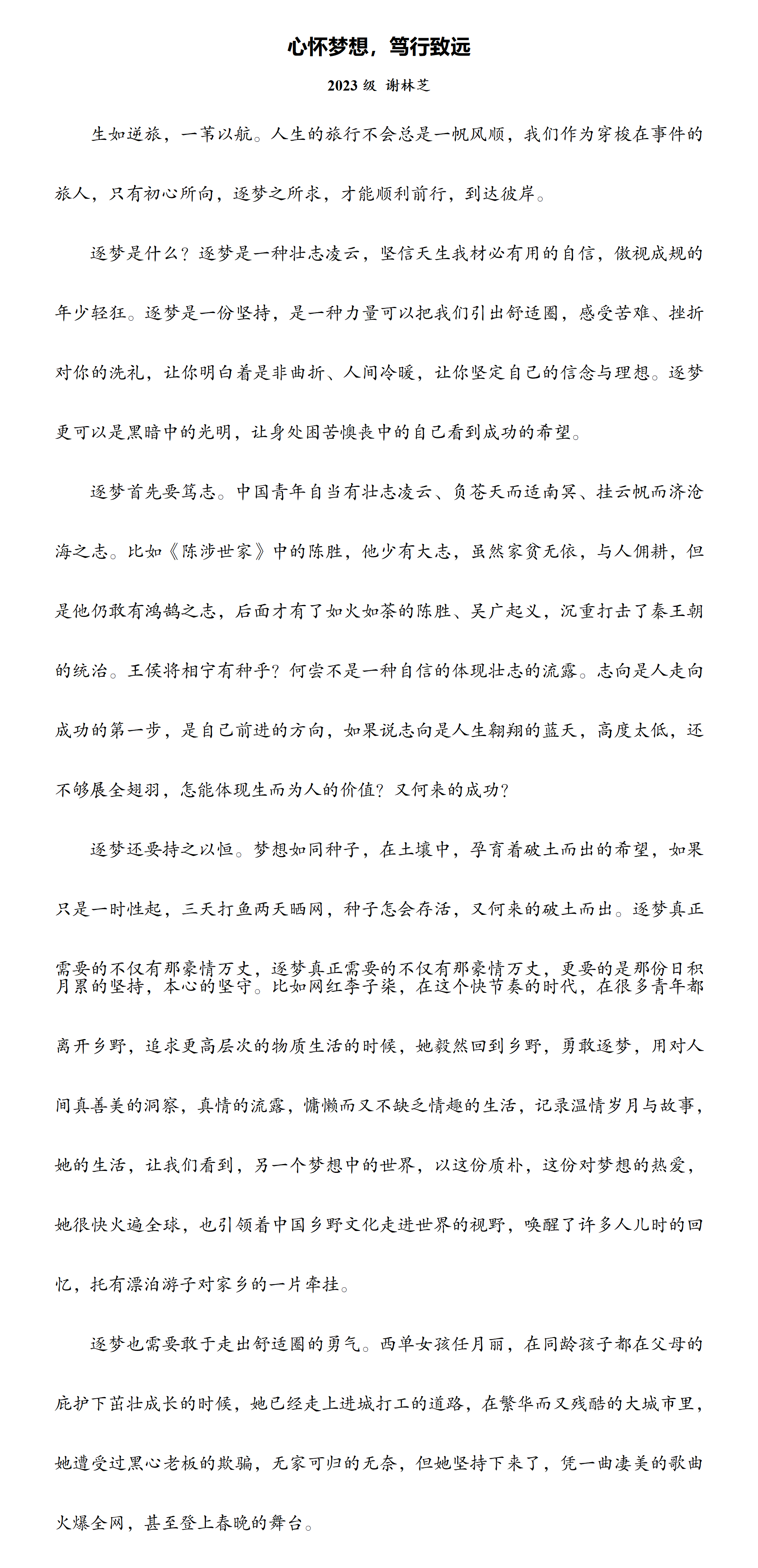 【学生佳作】谢林芝:《心怀梦想,笃行致远》
