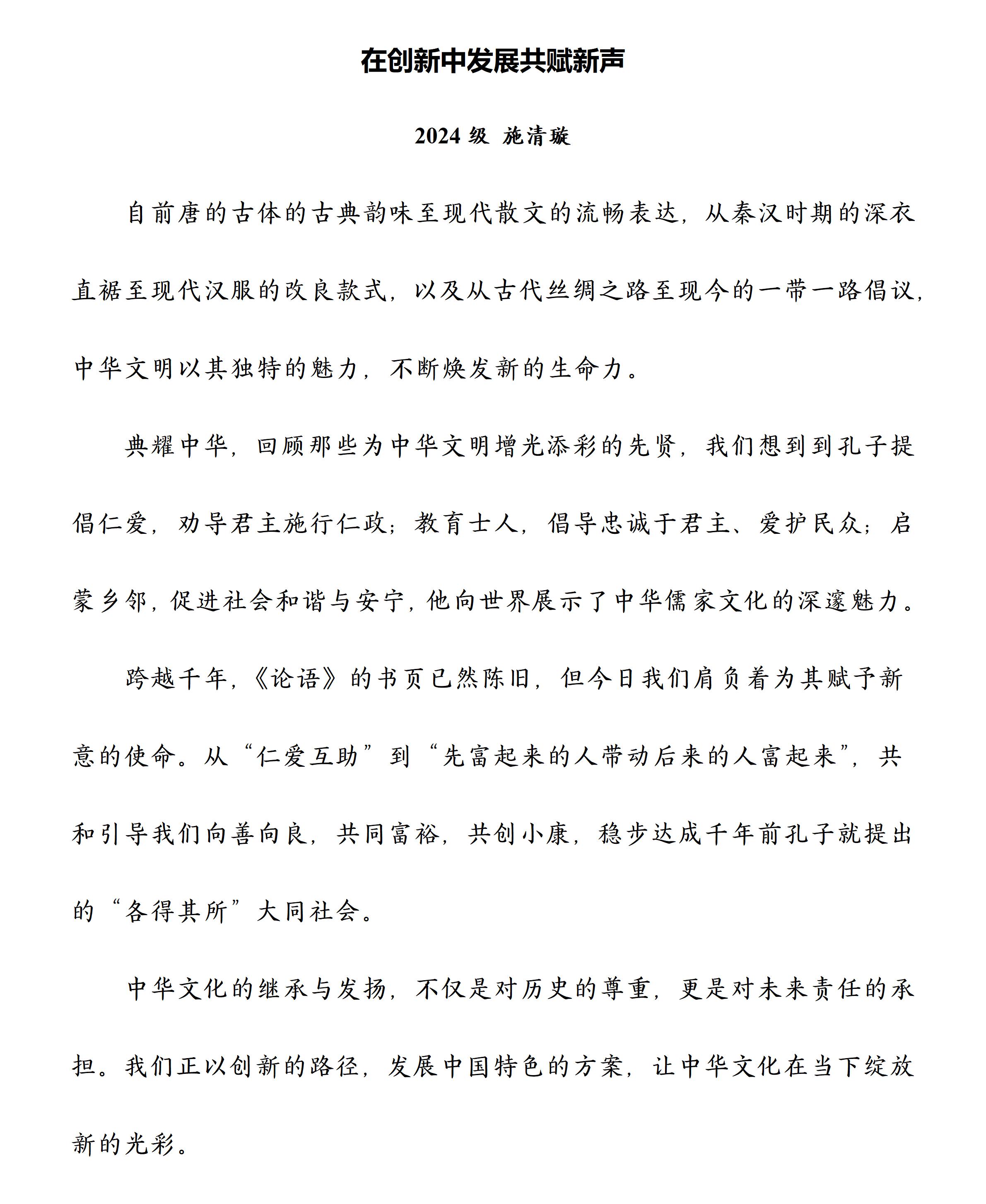 【学生佳作】施清璇:《在创新中发展共赋新声》