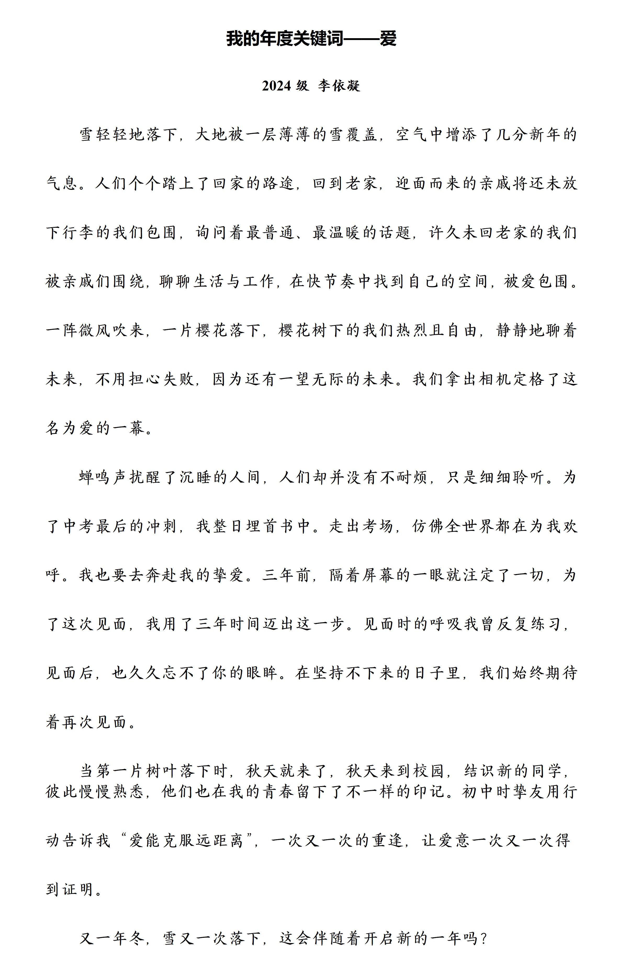 【学生佳作】李依凝:《我的年度关键词——爱》