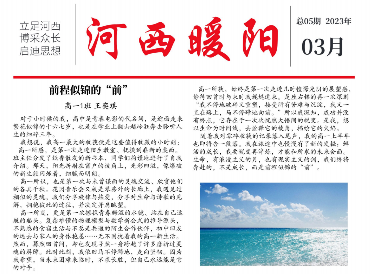 【河西暖阳】国际部师生共创报纸第01期
