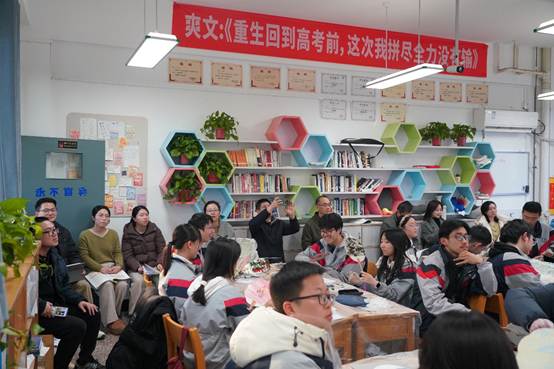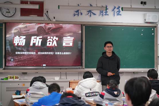 高三(1)班的教室内,《飞驰人生3》的热血片段点燃全场。在“精神传承”环节,学生们分组讨论“张驰精神对高三学习的启示”,金句频出:“弯道不是减速的理由,是超车的信号。”“团队协作就是彼此的‘领航员’。”在制定“新学期路书”时,学生认真填写学科、兴趣、运动三维目标,互相传看、点评建议,气氛庄重而温暖。宣誓环节,全体学生肃然起立,誓言铿锵,展现了高三学子昂扬向上的精神风貌。