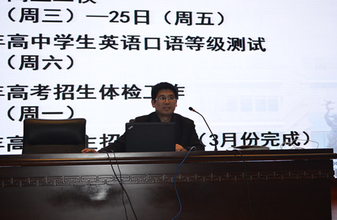 2016317号,我校高中部在千人报告厅召开了高三年级学生暨家长大会。高中部副主任赵建宁为全体高三学生和家长介绍了高中部近期工作和后阶段主要工作。南京市高三二模将于323日到25日举行,他希望高三学生调整好心态,积极备考,有效备考。高中学生英语口语等级测试将于326日在建邺高中举行。学校将统一安排校车,根据考生场次接送学生。他特别强调考生必须带好准考证和身份证。进入候考室时,不准携带任何通讯工具,不得将教材、参考书和文具用品等带进准备室。高考招生体检工作将于328日下午在南空招飞中心举行。最后赵主任说明了高校自主招生的报名方式 与材料审核程序。