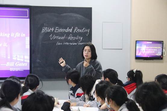 金陵中学河西分校杜菁菁老师为高二(2)班学生开设选必二第四单元“Virtual Reality”阅读课。课程以访谈脚本为核心语篇,亮点突出、设计层层递进。课堂引导学生梳理语篇体裁、预测核心内容,激活相关背景知识;课中通过快速阅读与细节阅读相结合的方式,带领学生逐步破解VR相关的关键问题,穿插小组讨论与批判性思维引导,深化对文本的理解;课后设计写作任务,引导学生感悟科技与人类生活的紧密关联。课程助力学生提升科技场景下的语言运用能力、文化思辨能力与创新思维,切实感受科技发展的深远影响。