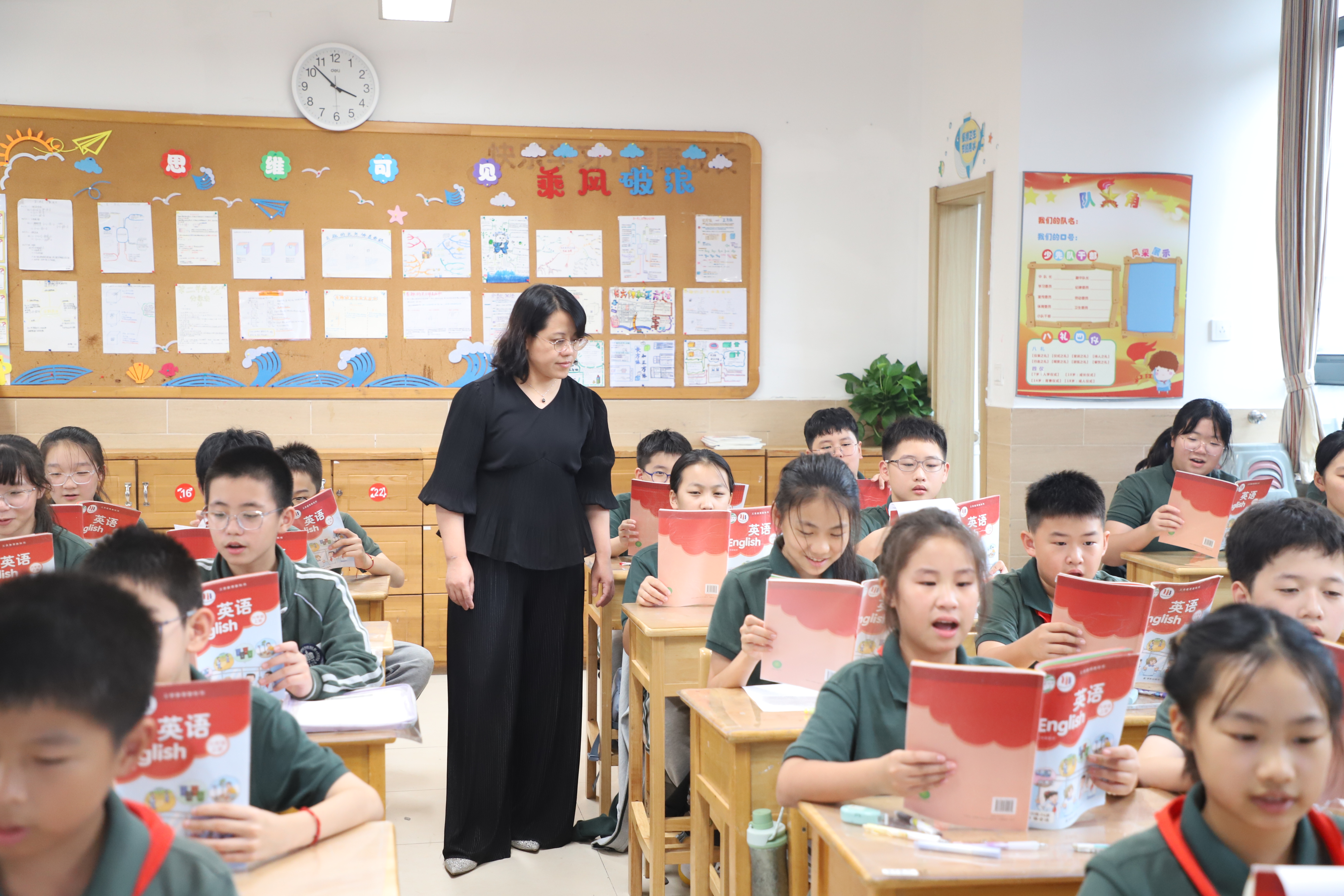 她更懂得“创造机会”的教育智慧。学生没做好课前准备?她不批评,反而笑着说:“我来早了,出去重新进来,你们准备一下。”待学生坐定,她立刻高声表扬:“全体同学坐姿端正,安静整齐!”一堂课,就这样在轻松中开启。