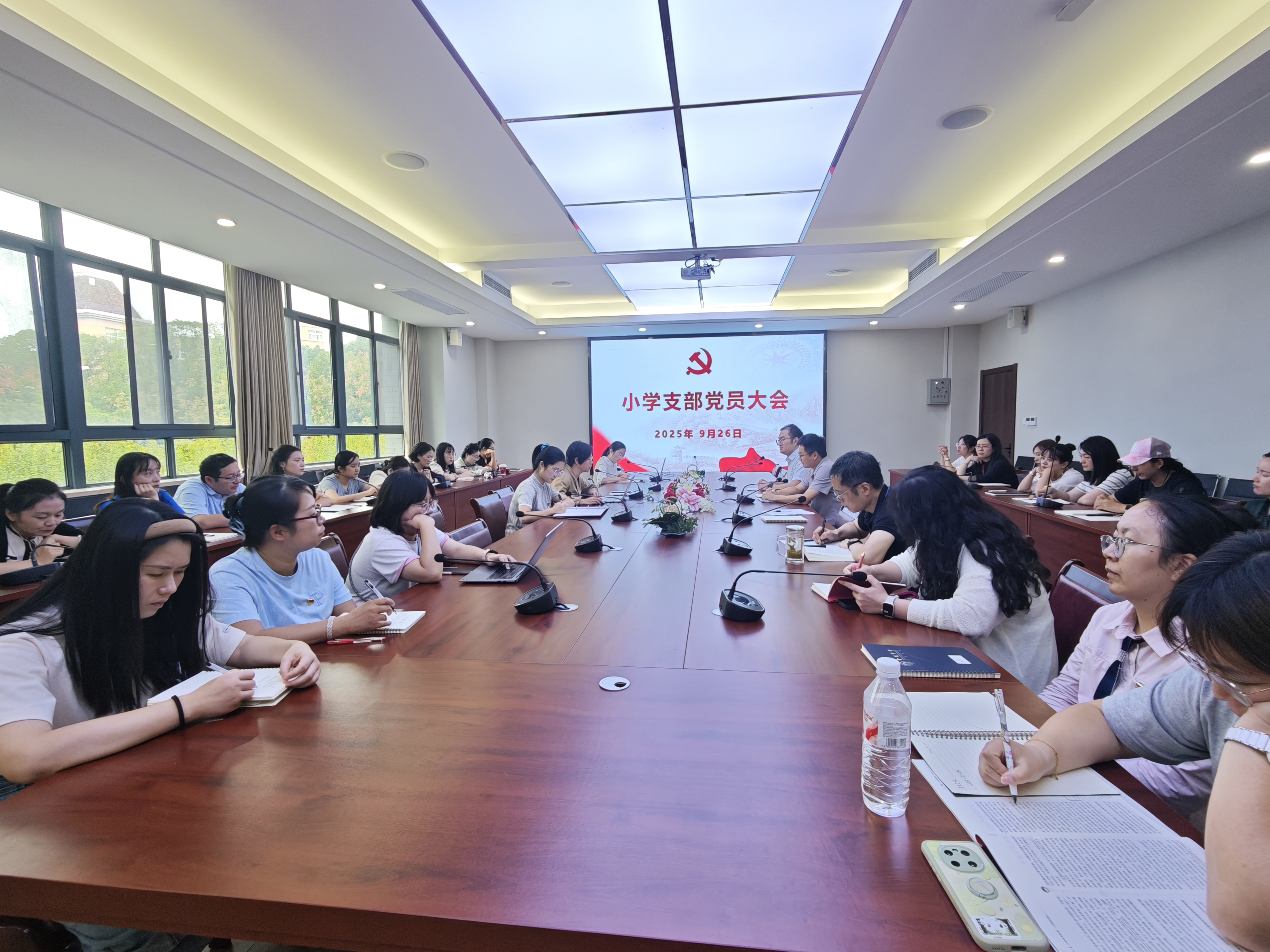 2025年9月26日下午,南京市金陵河西学校小学党支部召开全体党员大会,会议由党支部副书记邱明莉主持,全体党员同志参会,凝聚思想共识,共话育人担当。