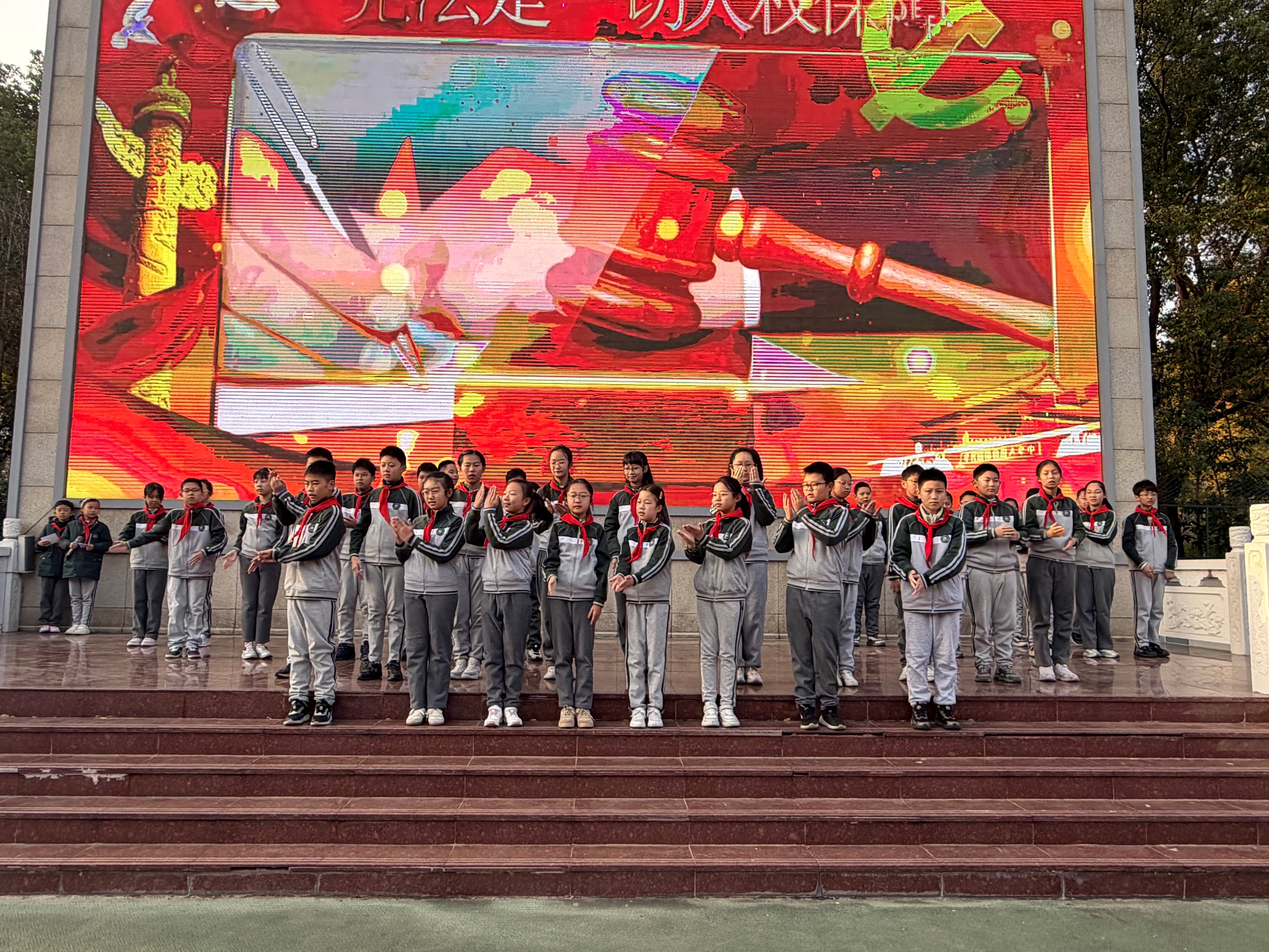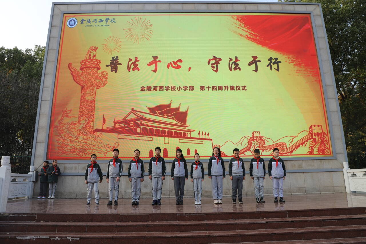 寒冬伊始,晨光熹微,12月1日上午,金陵河西校园迎来了小学部第十四周升旗仪式。本次仪式由六(1)中队精心承办,以“普法于心,守法于行”为主题,将严肃的法律知识与生动的校园场景相结合,为全体师生带来了一场别开生面的法治启蒙教育。