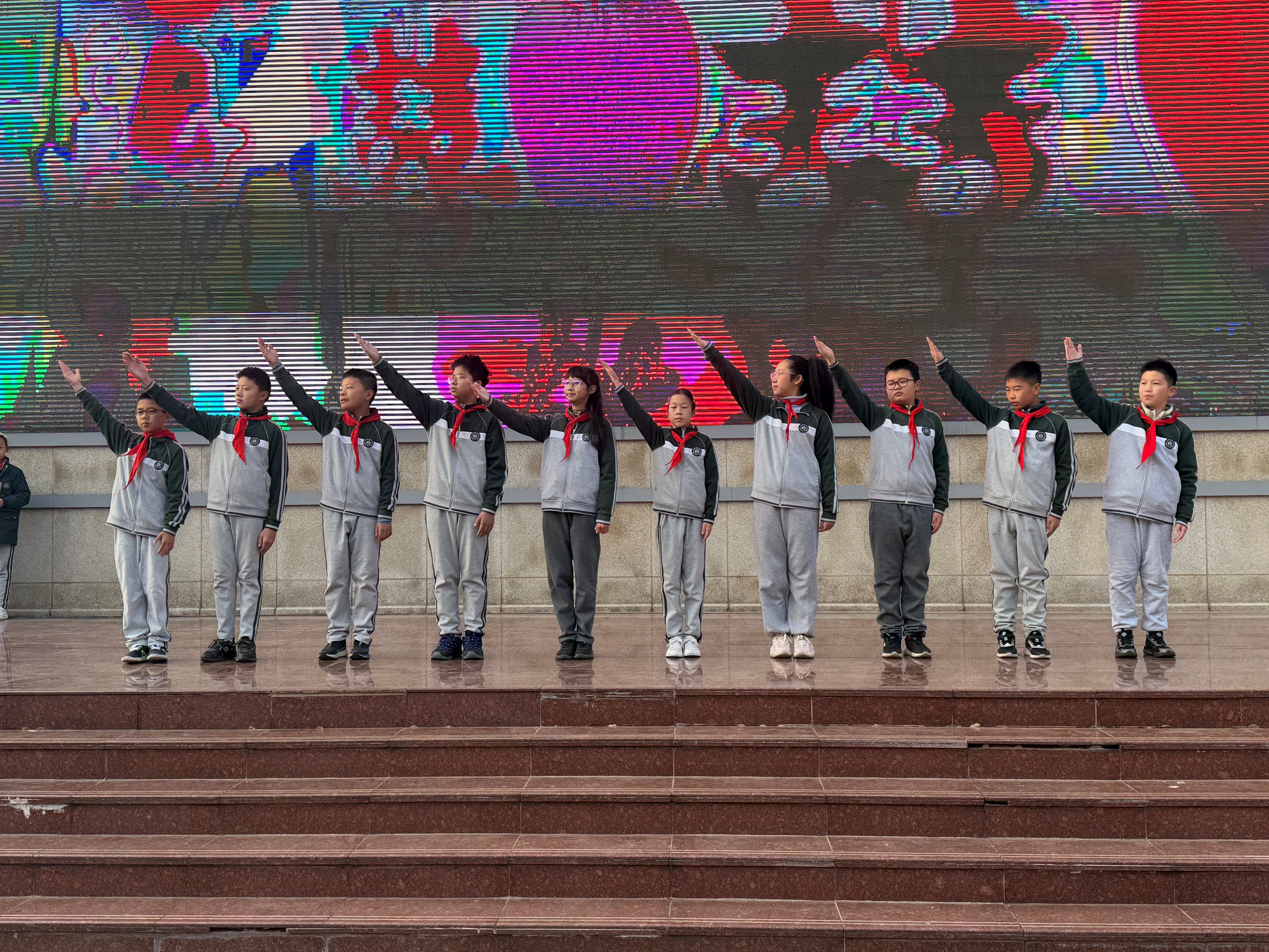 伴随着雄壮的《义勇军进行曲》,本周的光荣升旗手——六(1)中队的刘可为、张雅琪同学身着整洁校服,神情庄重,她们目光坚定,动作规范,展现出高年级学子的沉稳与担当。当鲜艳的五星红旗冉冉升起,全体师生肃立注目,嘹亮的歌声响彻校园。
