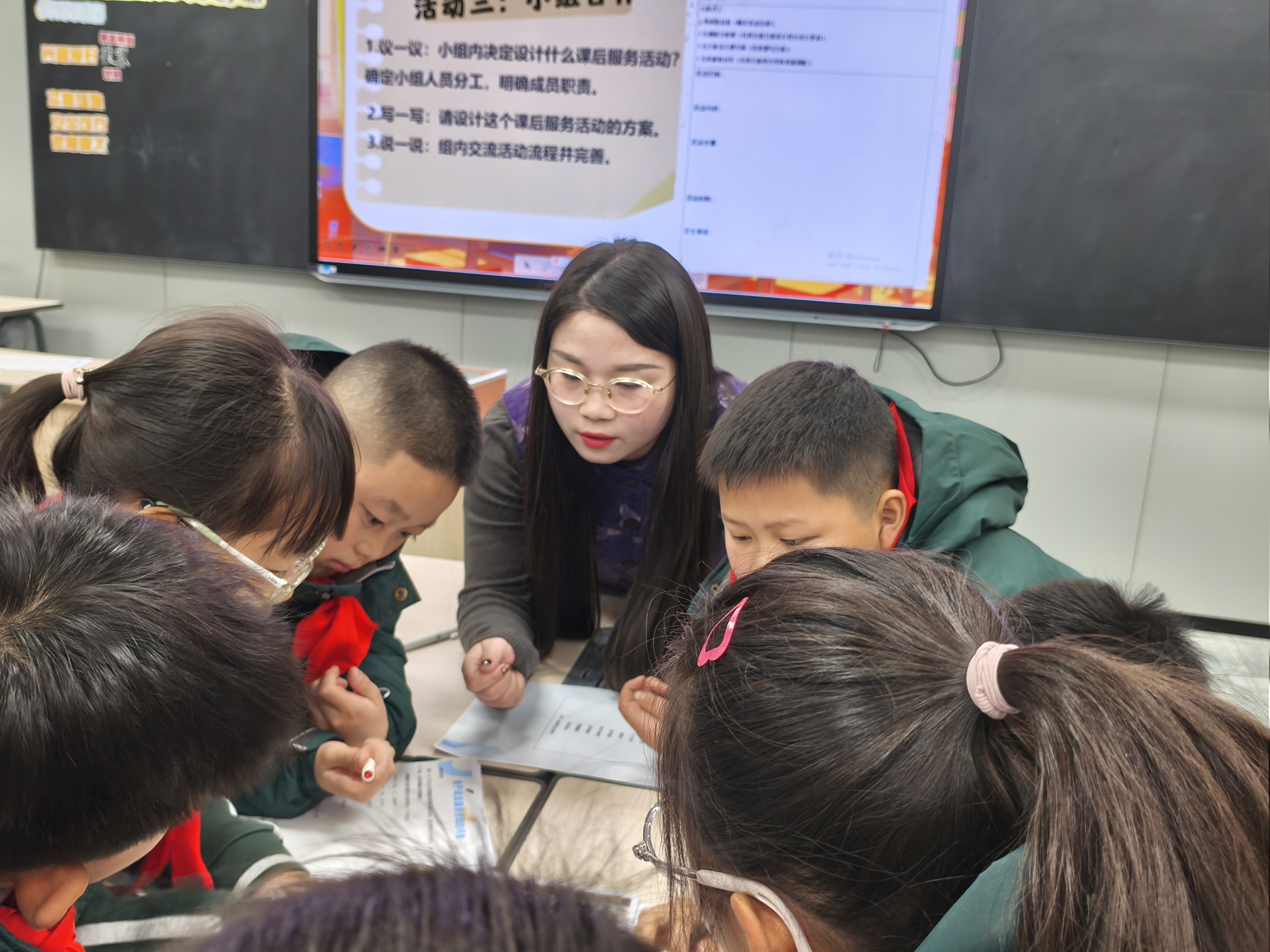 第二节课是金陵河西学校小学部刘慧老师带来的四年级《课后服务我创意》。本节课聚焦“双减”背景下的课后服务内容创新,引导学生从实际需求出发,设计具有趣味性、教育性的课后服务活动方案。学生通过小组合作、方案展示等形式,提升了问题解决与协作表达能力。