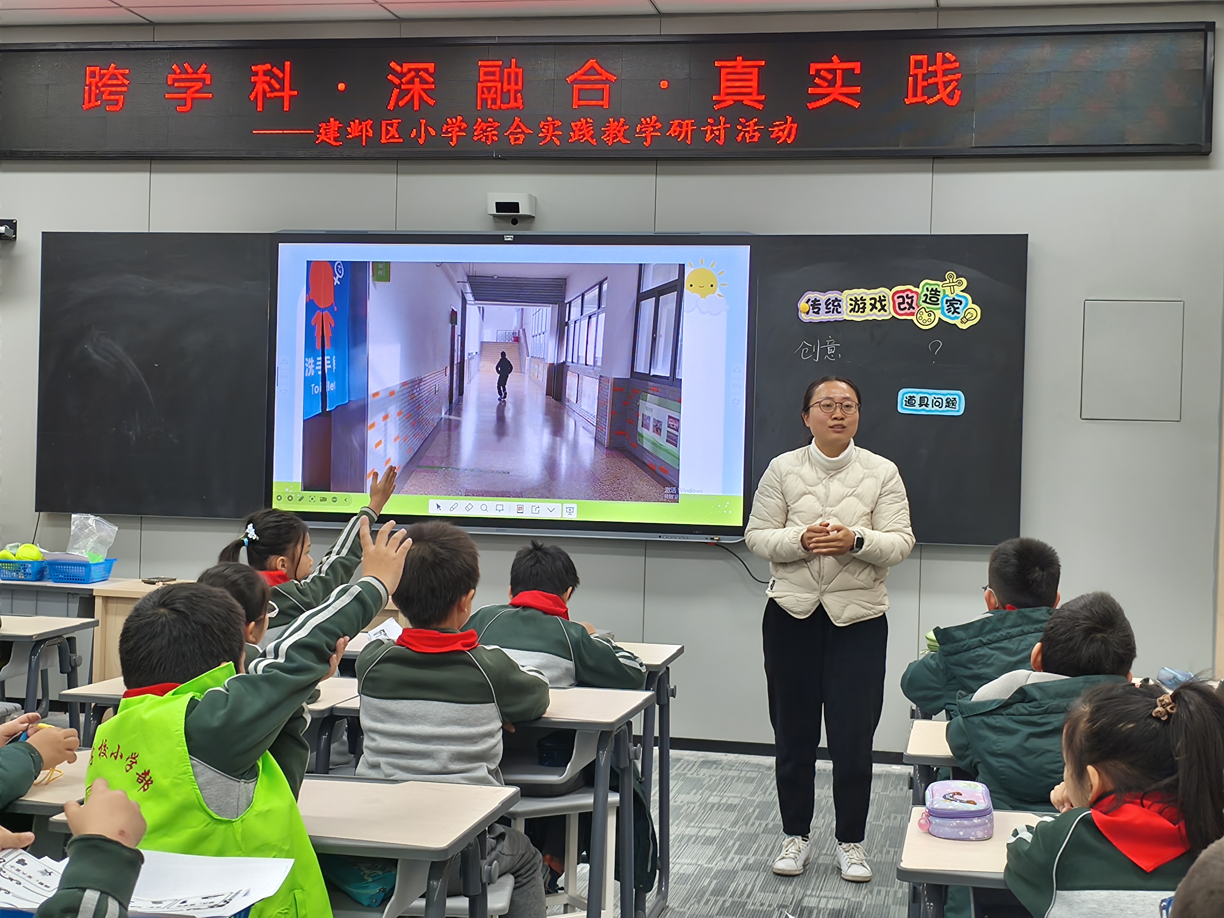 第三节由南京师范大学附属中学黄山路小学的韦习娟老师执教三年级《传统游戏改造家》。课程以传统游戏为载体,鼓励学生结合现代生活情境对游戏规则、材料、形式进行创新改造。学生在游戏设计与体验中,既传承了文化,又激发了创新思维与实践能力。