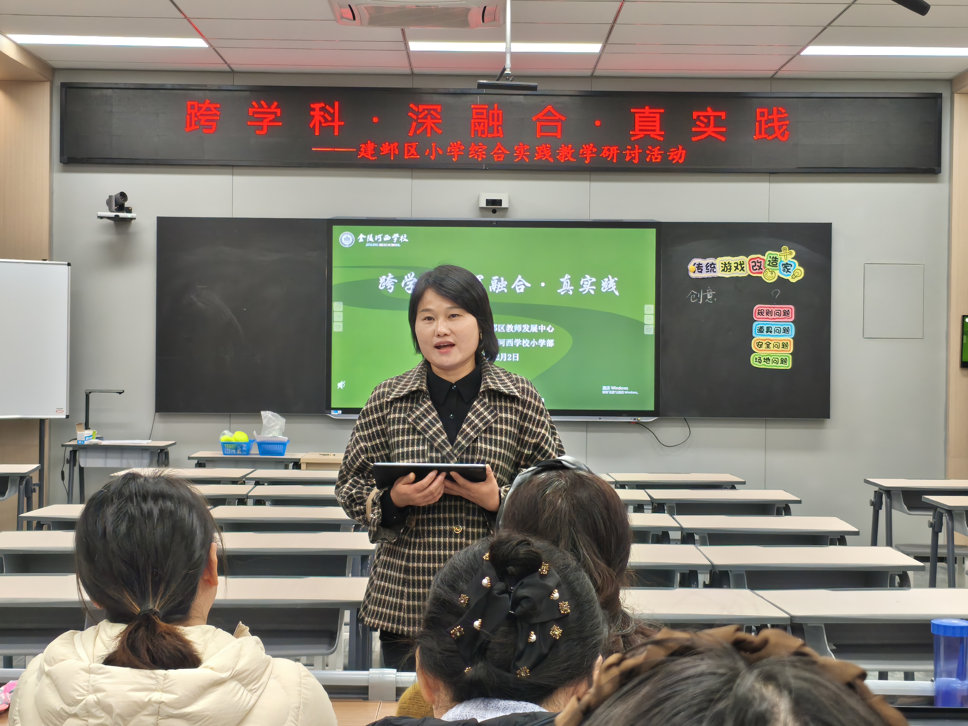 课后,与会教师围绕三节课例展开深入研讨。大家一致认为,这三节课充分体现了综合实践活动的“跨学科整合”与“真实情境实践”特点,有效促进学生核心素养的落地。建邺区教师发展中心综合实践教研员孔老师在总结中指出,综合实践课程应进一步打破学科边界,强化课程的结构化设计与实施,推动教师在真实问题中引导学生开展深度学习与实践创新。