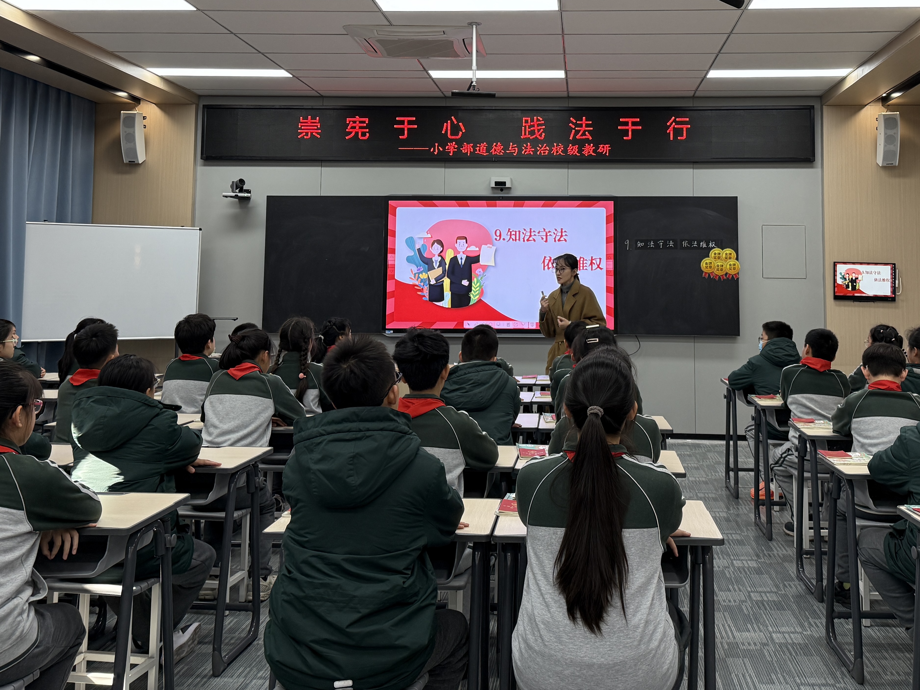 2025年12月,金陵河西小学道德与法治主题系列活动正式启动。学校道德与法治教研组围绕主题“崇宪于心,践法于行”,通过校级展示课、法治小报展、知识竞答、模拟法庭四大特色活动,构建沉浸式法治教育体系,让宪法精神在校园落地生根。