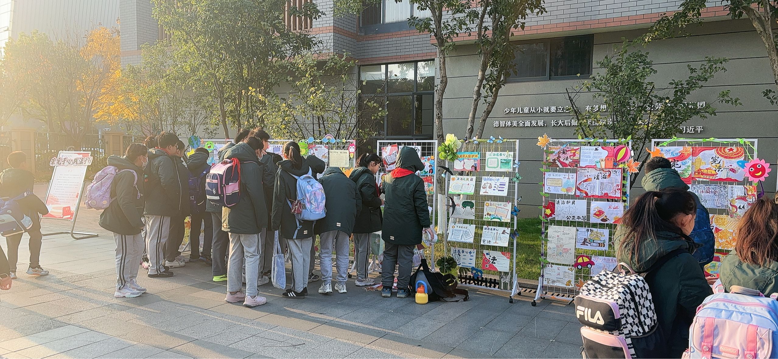 12月3日清晨,小学部怀抱广场上格外热闹。十二个精心布置的展架依次排开,上面是同学们亲手绘制的法治主题小报。缤纷的色彩与工整的文字间,流淌着他们对宪法的崇敬、对法治的理解。