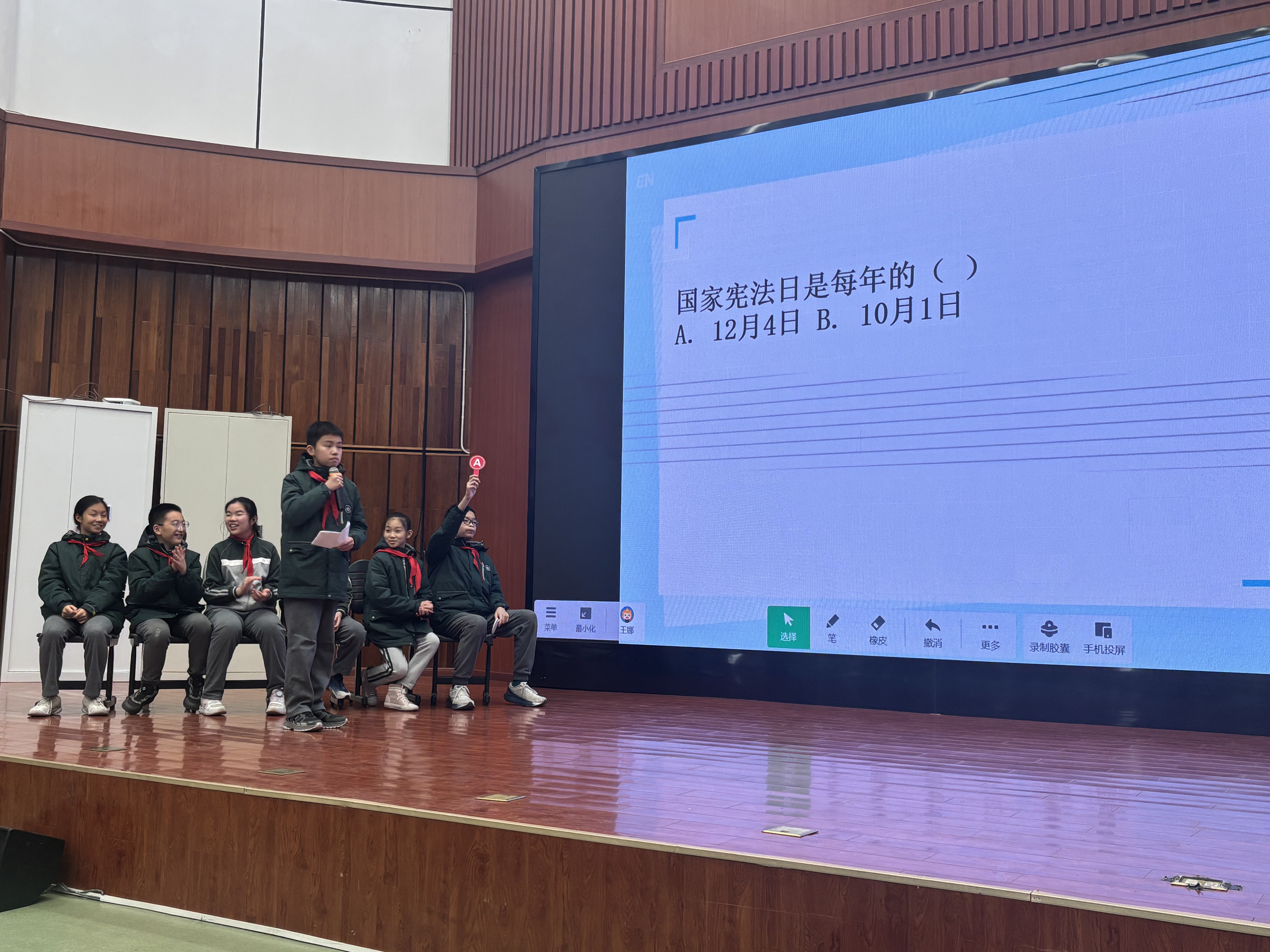 12月1日清晨,小学部第十四周升旗仪式由六(1)中队承办。在雄壮的国歌声中,五星红旗冉冉升起,一场特别的法治主题教育就此拉开帷幕。