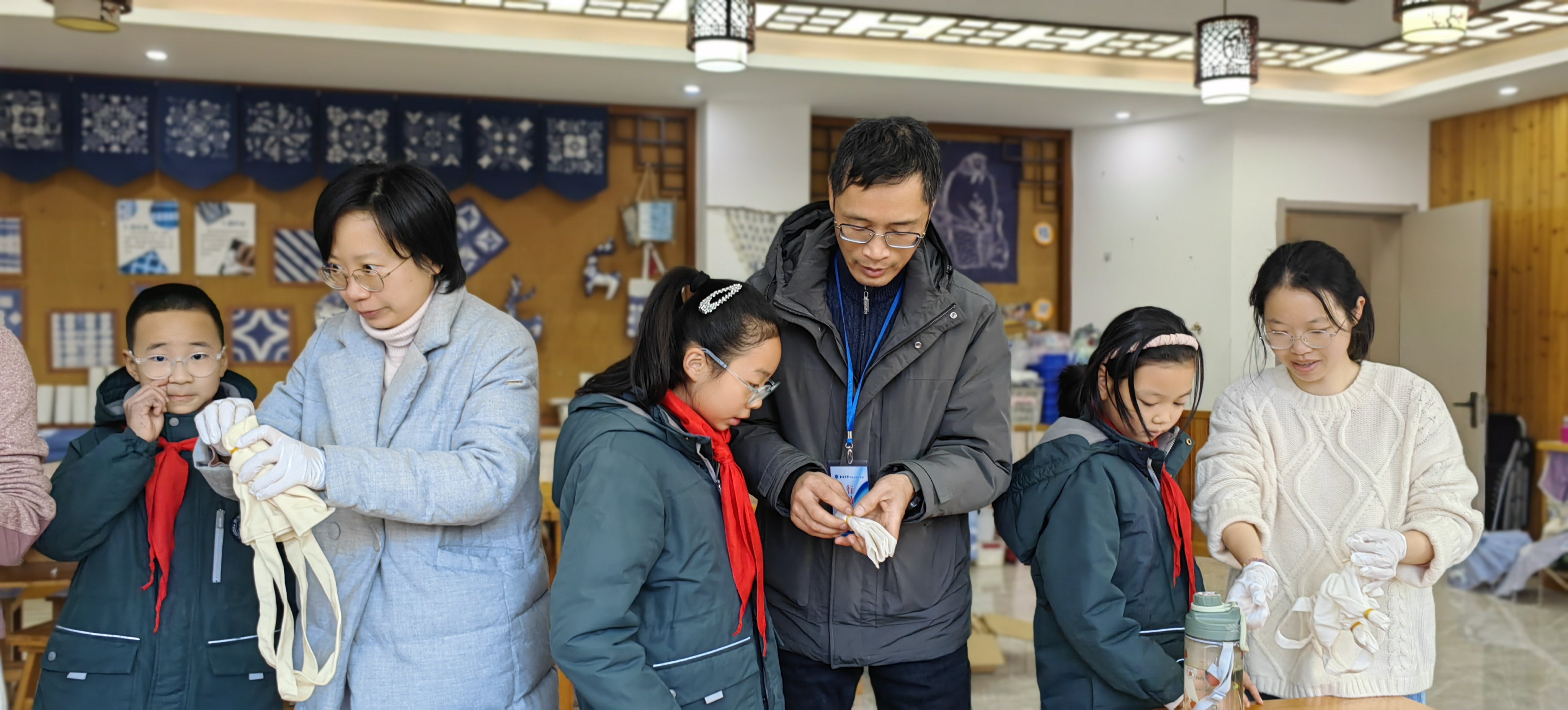 为传承非遗技艺,彰显美术学科育人价值,12月16日至19日,南京市金陵河西学校小学部美术组以“扎糊承韵・染艺焕新”为主题,开展了扎染型糊染特色课程展示活动,通过多元形式让扎染艺术在校园焕发新生。本次活动由课程教学处朱兆明副主任带领全体美术教师协同筹备。