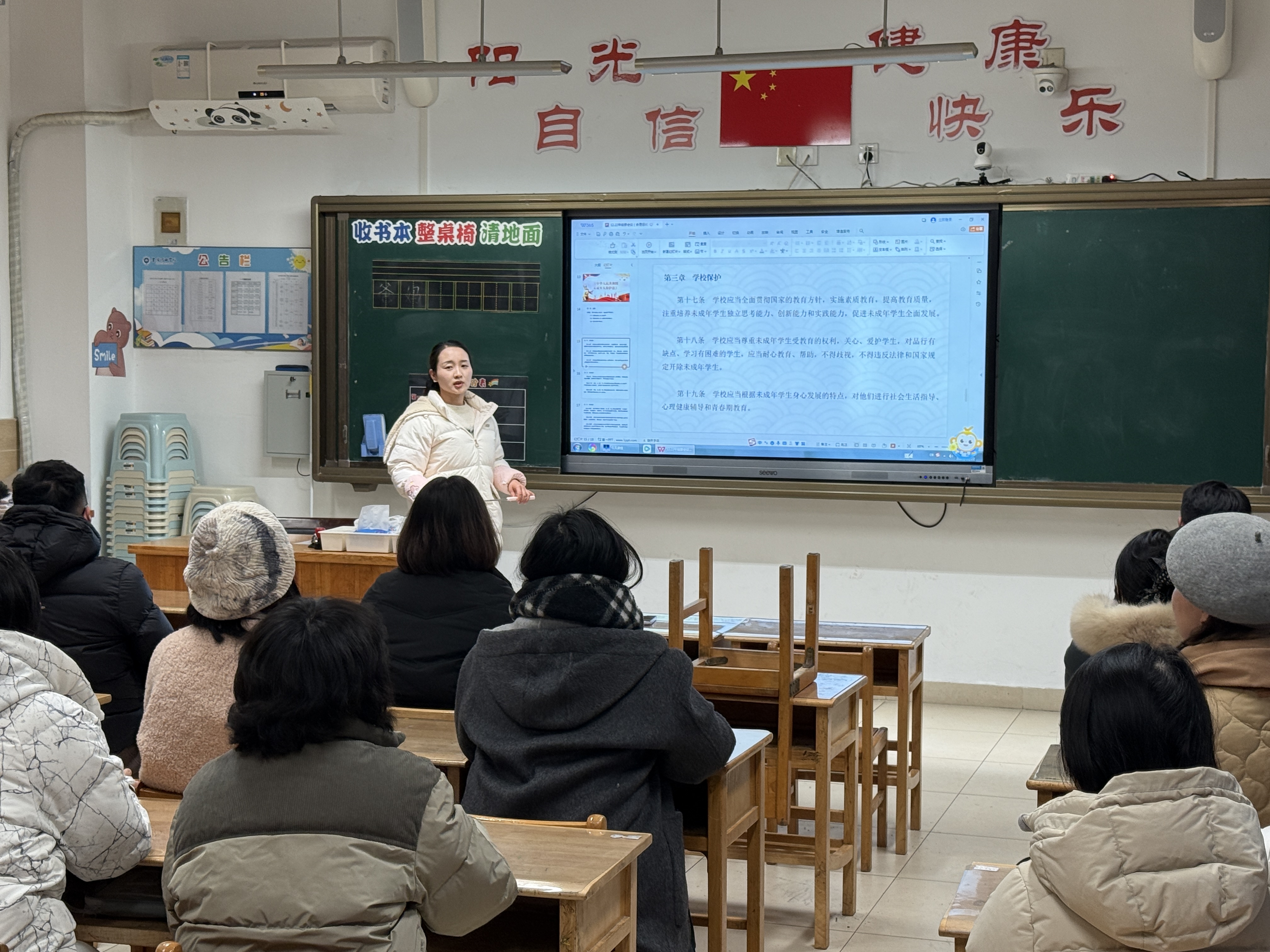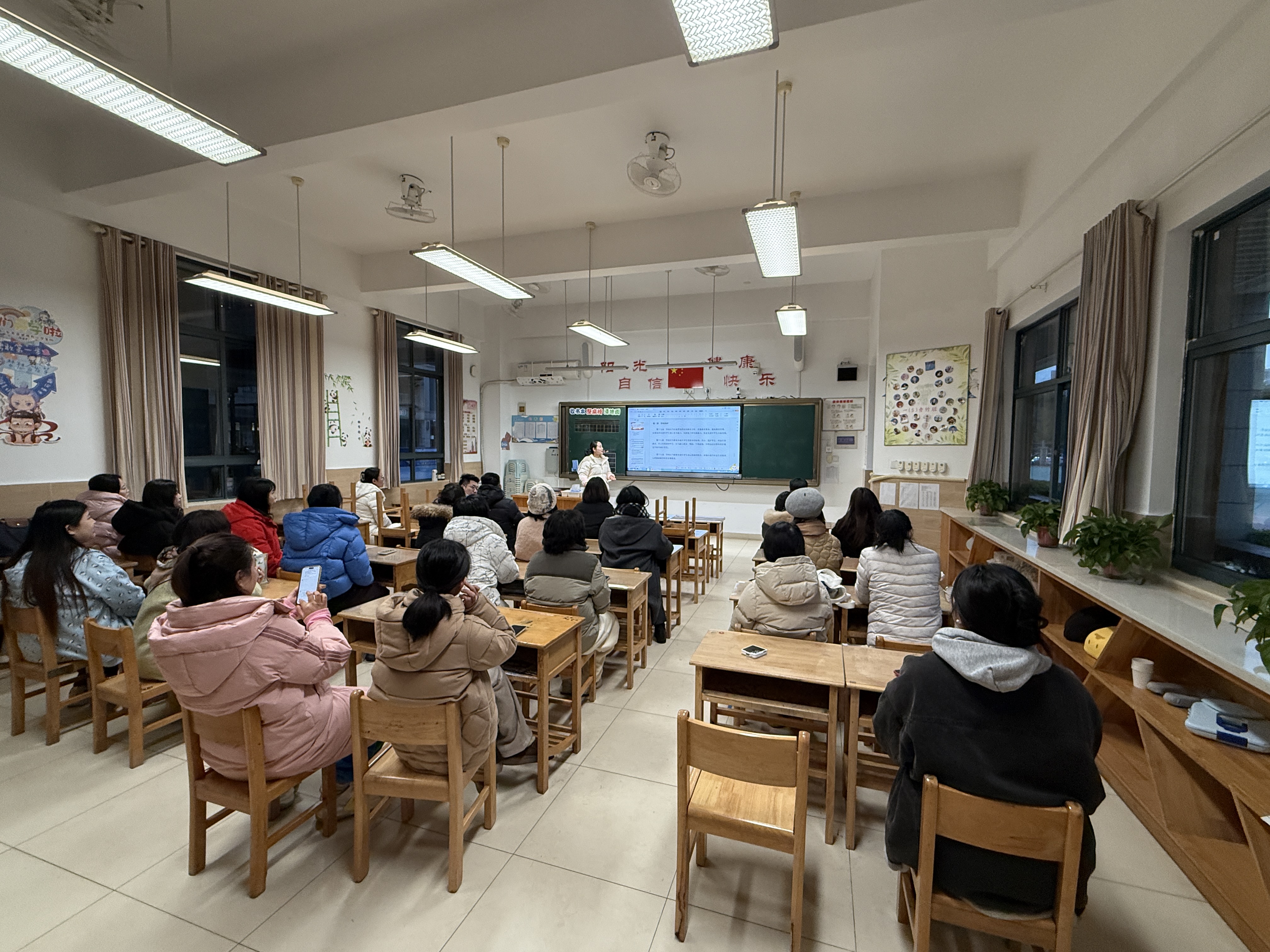 会议伊始,王老师强调了师德师风建设在低年级教育教学工作中的基础性、引领性作用:一年级是学生行为习惯养成、价值观启蒙的关键阶段,教师的师德修养、言行举止直接影响学生的成长轨迹,全体教师必须以高标准严格要求自己,当好学生成长路上的引路人。随后,王老师带领全体教师逐字逐句学习《教师职业道德》“三要八不准”、《中小学教育惩戒规则(试行)》以及《中华人民共和国未成年人保护法》中的相关规定,围绕“关心爱护学生”,结合低年级学生年龄特点,细化了课堂关注、课后关怀的具体要求;针对“加强安全防范”,明确了校园活动、上下学等环节的安全责任边界。