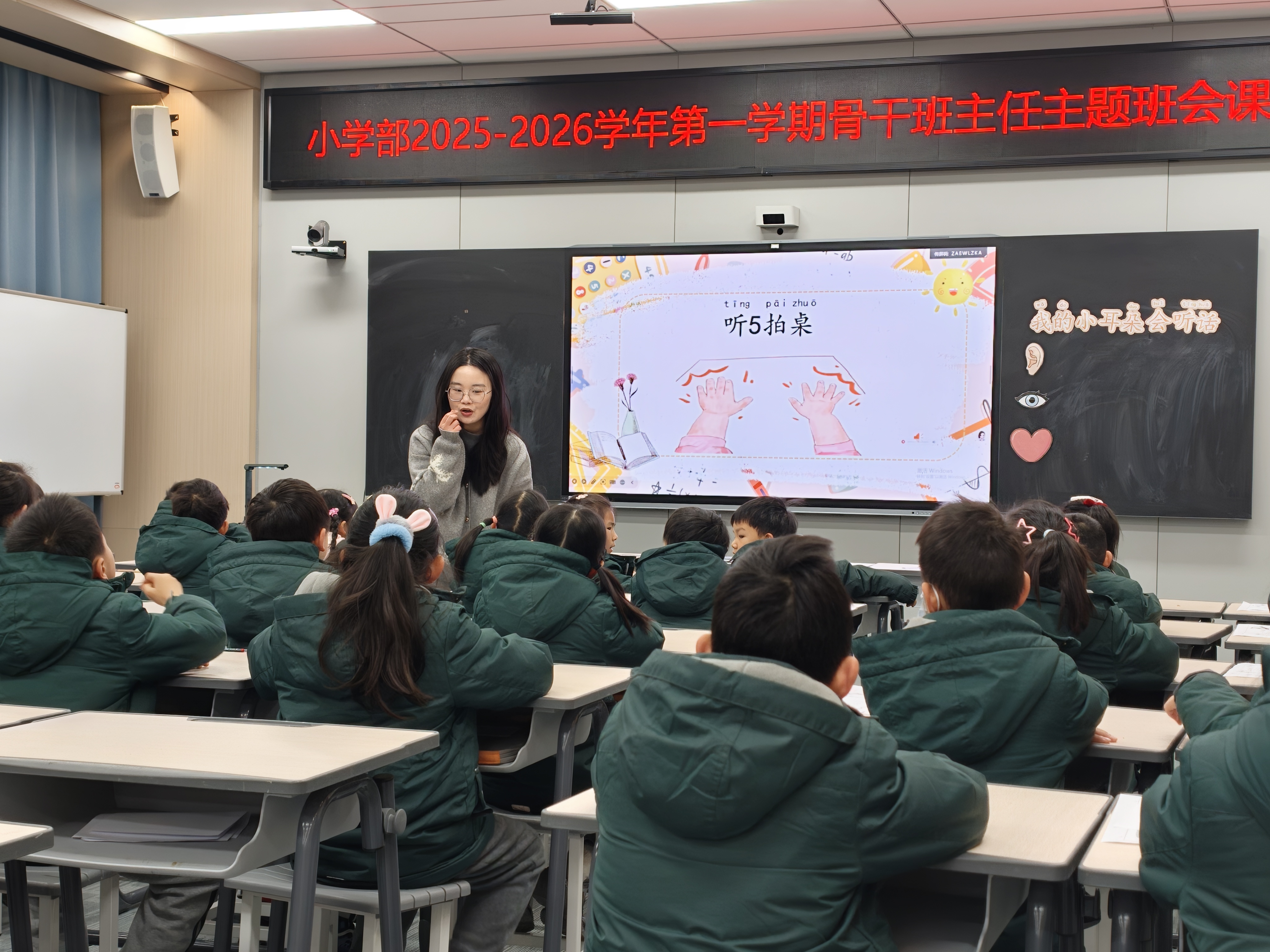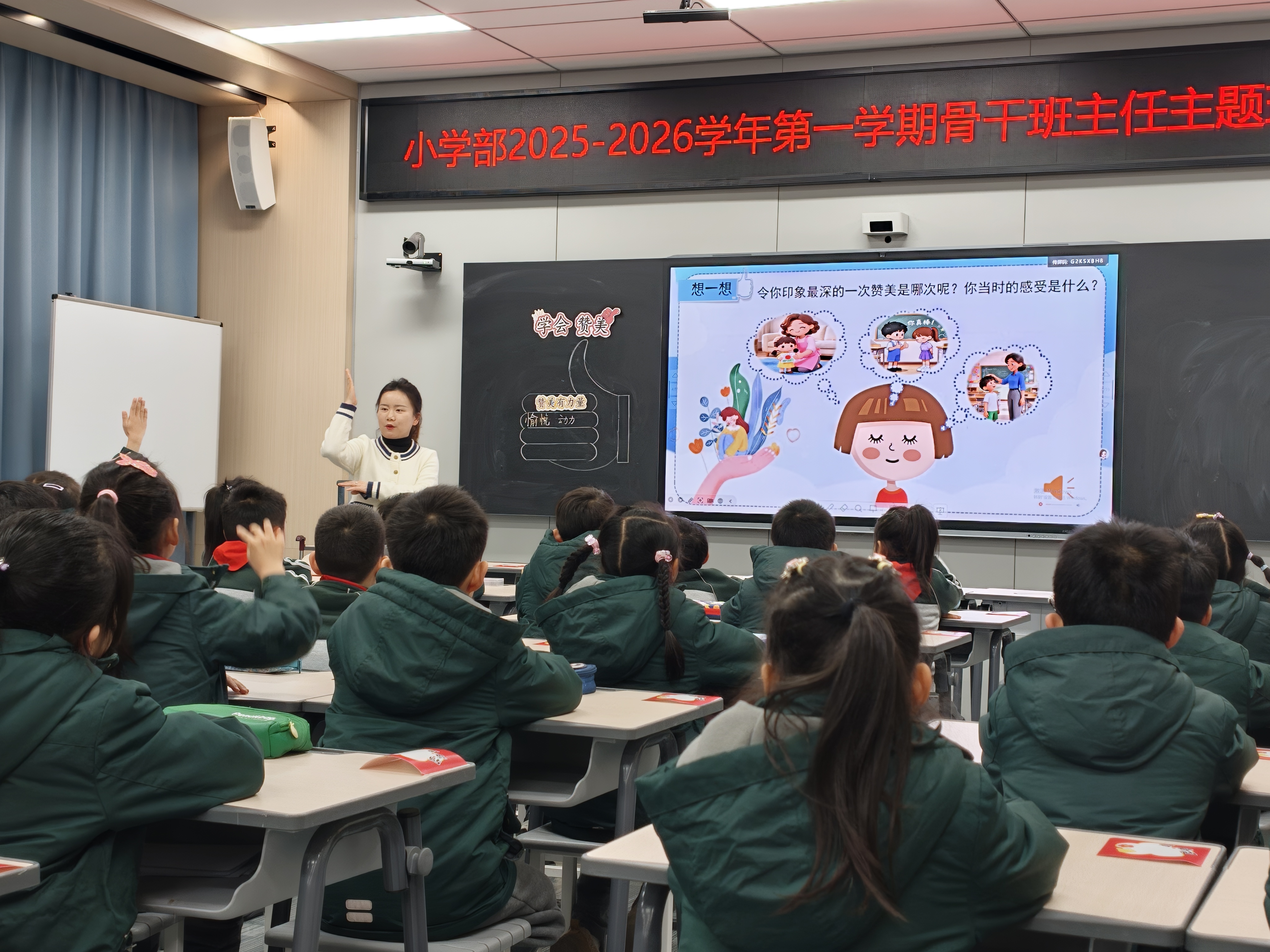 2025年12月25日,金陵河西学校小学部以“适应力、共感力、表达力、创造力”关键能力培养为核心,成功开展骨干班主任主题班会展示活动。余婧婷、徐玮两位老师分别以“学会赞美”与“我的小耳朵会‘听话’”为主题,通过趣味化、实践性的课堂设计,让学生收获成长。