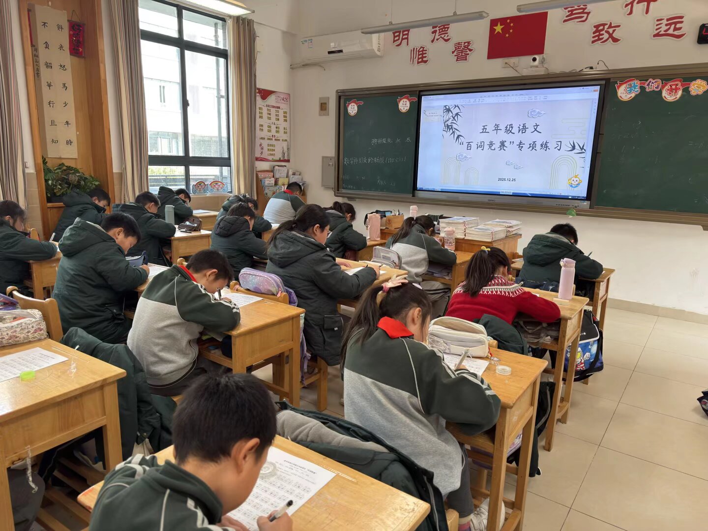 为夯实学生字词基础,提升学生规范书写能力,营造良好的语文学习氛围,12月25日中午,五年级语文组组织开展了百词竞赛活动。