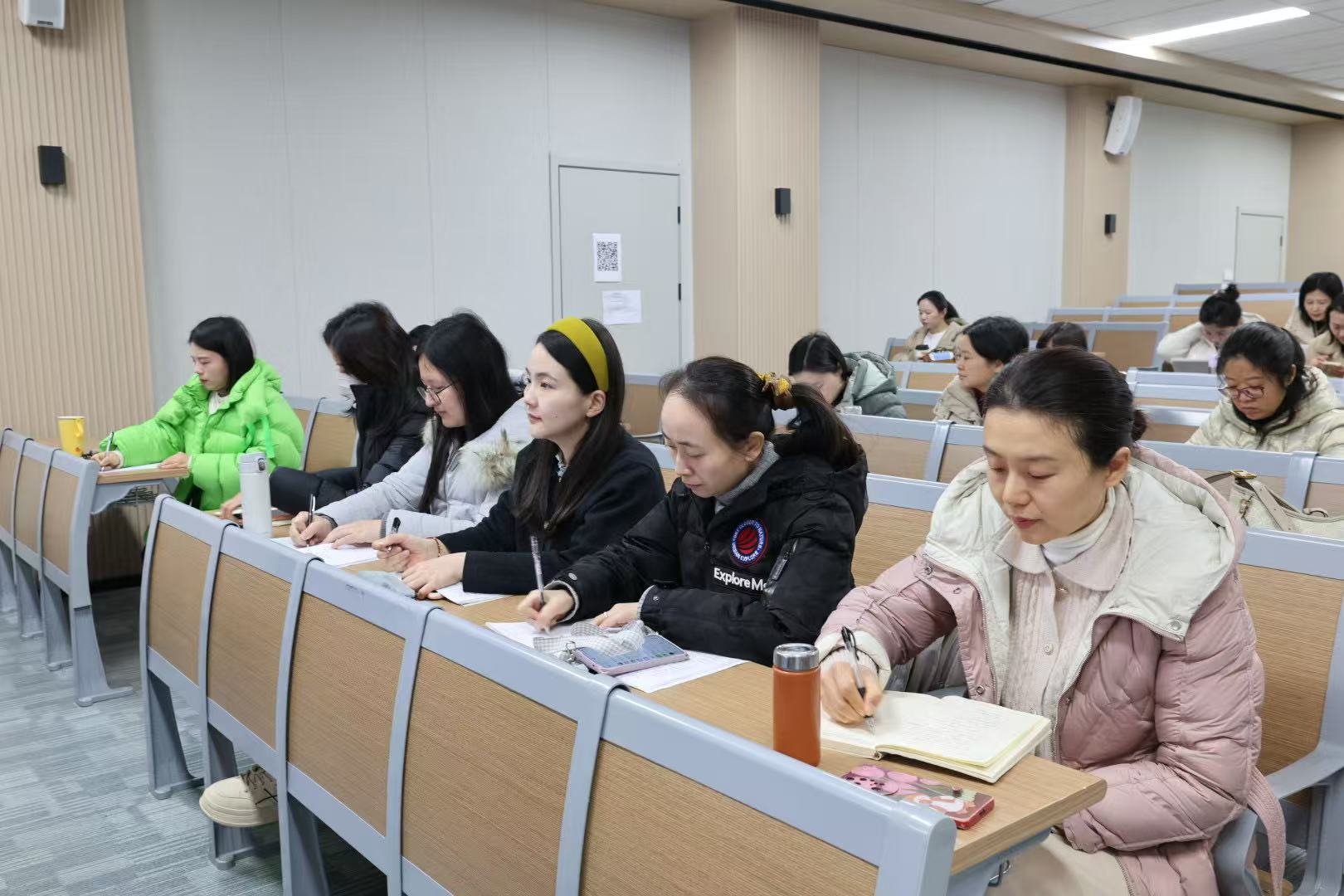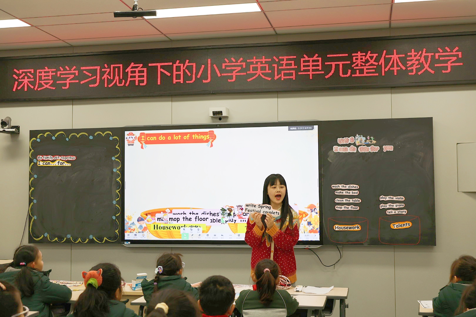 三节展示课后,我校曹悦老师带来了题为《聚焦素养生长:深度学习导向的小学英语单元整体教学设计与实施》的专题讲座。曹老师从理论依据、设计路径与课堂实施三个维度,系统阐述了如何在单元教学中整合语言、思维、文化与学习能力的发展。她结合具体案例,分享了目标统整、任务递进、评价伴随的教学策略,为教师们提供了清晰可操作的单元整体教学设计框架。讲座内容深入浅出,贴近教学实际,与会教师纷纷表示受益匪浅。