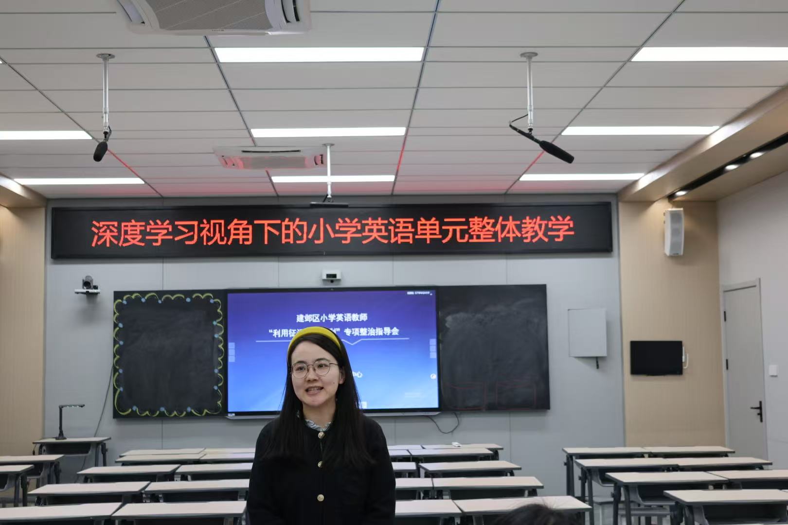2026年1月8日上午,建邺区第二盟区小学英语“深度学习视角下的小学英语单元整体教学”专题研讨活动在我校顺利举行。本次活动旨在贯彻落实《义务教育英语课程标准(2022年版)》精神,推动单元整体教学设计与实施,促进教师教学理念更新与课堂实践能力提升。来自盟区各校的英语教师齐聚我校录播教室,共同观摩课例、聆听讲座、参与研讨,展开了一场扎实而富有深度的教学交流。