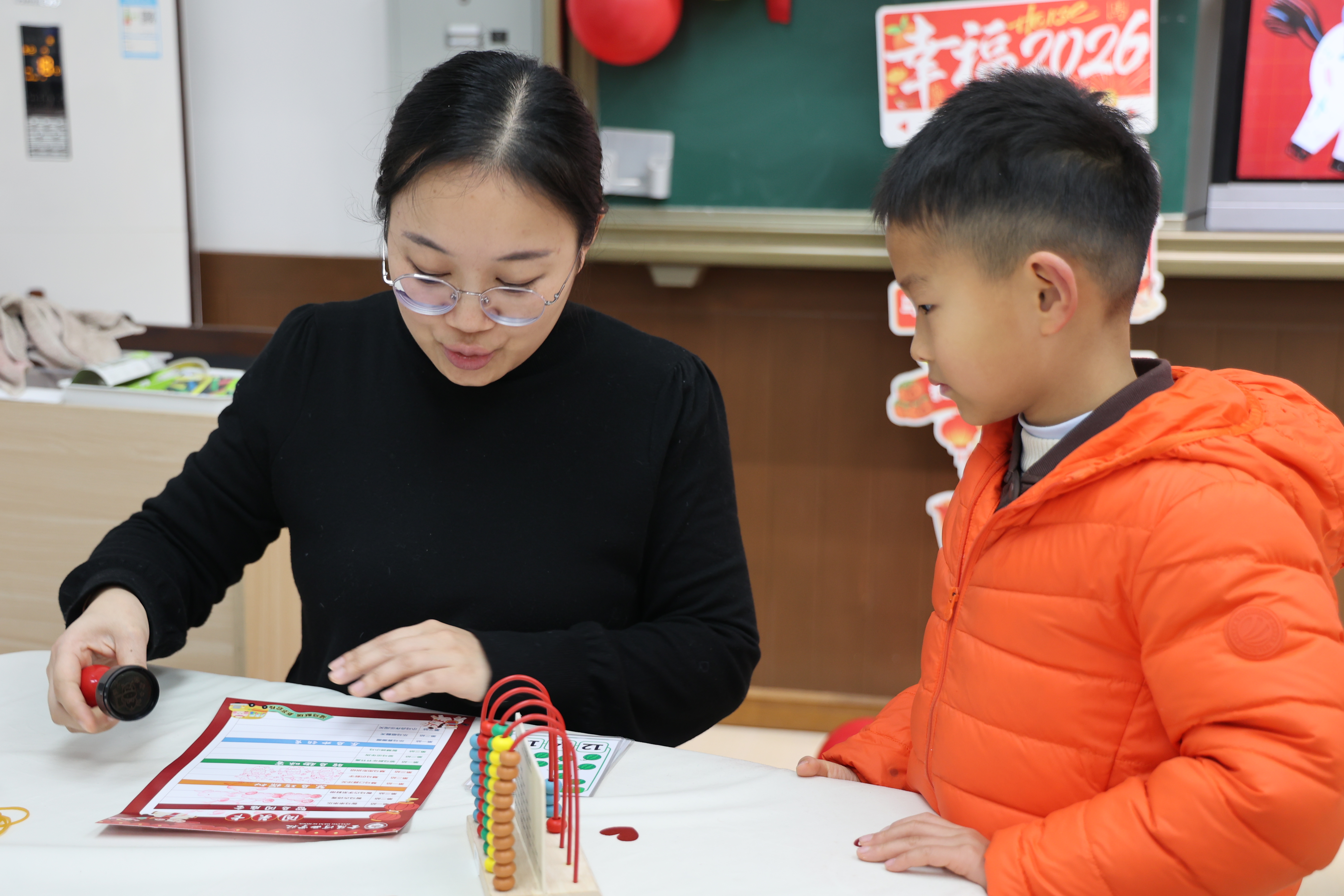 本次活动精心融合春节文化与马年生肖元素,将语文、数学、英语、劳动等多学科知识巧妙融入四大主题关卡,搭配德法合作闯关任务,构建了全方位、沉浸式的测评场景。活动前,老师们精心布置场地,小马节节高、糖葫芦靶子、新年套圈等道具充满童趣,闯关卡上的姓名贴与不同名称的小马印章,让孩子们充满期待。