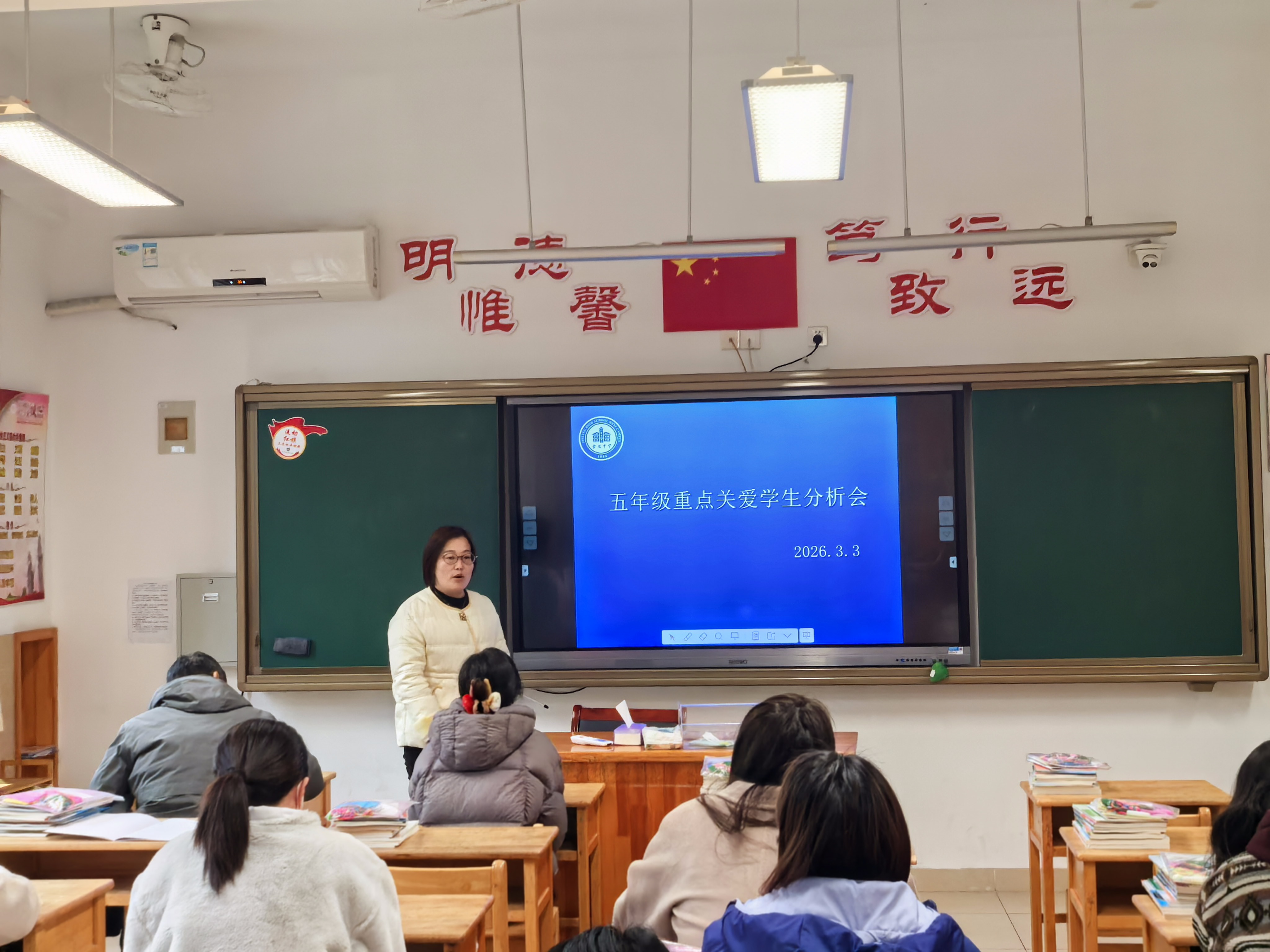 会议伊始,孙主任指出,本学期是时间最短的学期,这一特点对各项工作的效率与质量提出了更高要求。同时,她充分肯定了五年级组的优势:级部运行平稳安全,师资力量强大,教学水平一流,教科研成果突出,为新学期工作开展奠定了坚实基础。面对“最短学期”的挑战,孙静主任强调,要聚焦“精准帮扶”,针对学生差异制定个性化策略,确保每一位学生都能跟上节奏、学有所获。