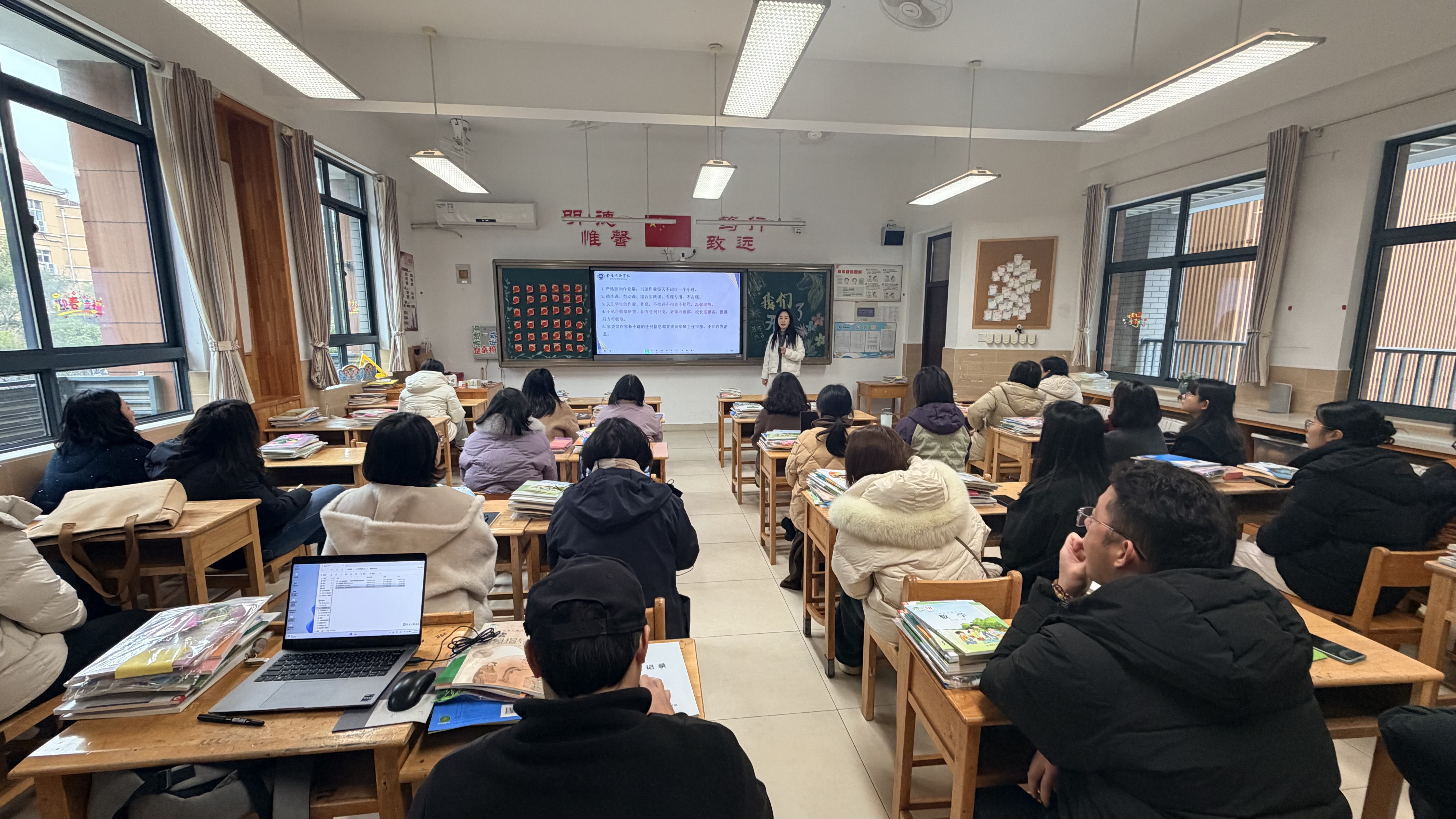 会议伊始,年级部围绕教学常规、德育工作、日常管理三大核心工作进行全面部署。针对教学常规,明确了备课、上课、作业批改、课后辅导等各项要求,强调夯实教学基础,提升课堂效率;在德育工作方面,聚焦学生行为习惯养成、思想道德教育,制定新学期德育活动计划,助力学生全面发展;同时对校园安全、卫生管理、班级日常等常规工作细化分工,责任到人,确保各项工作有序推进。全体教师认真聆听、详细记录,对新学期工作思路清晰、目标明确。