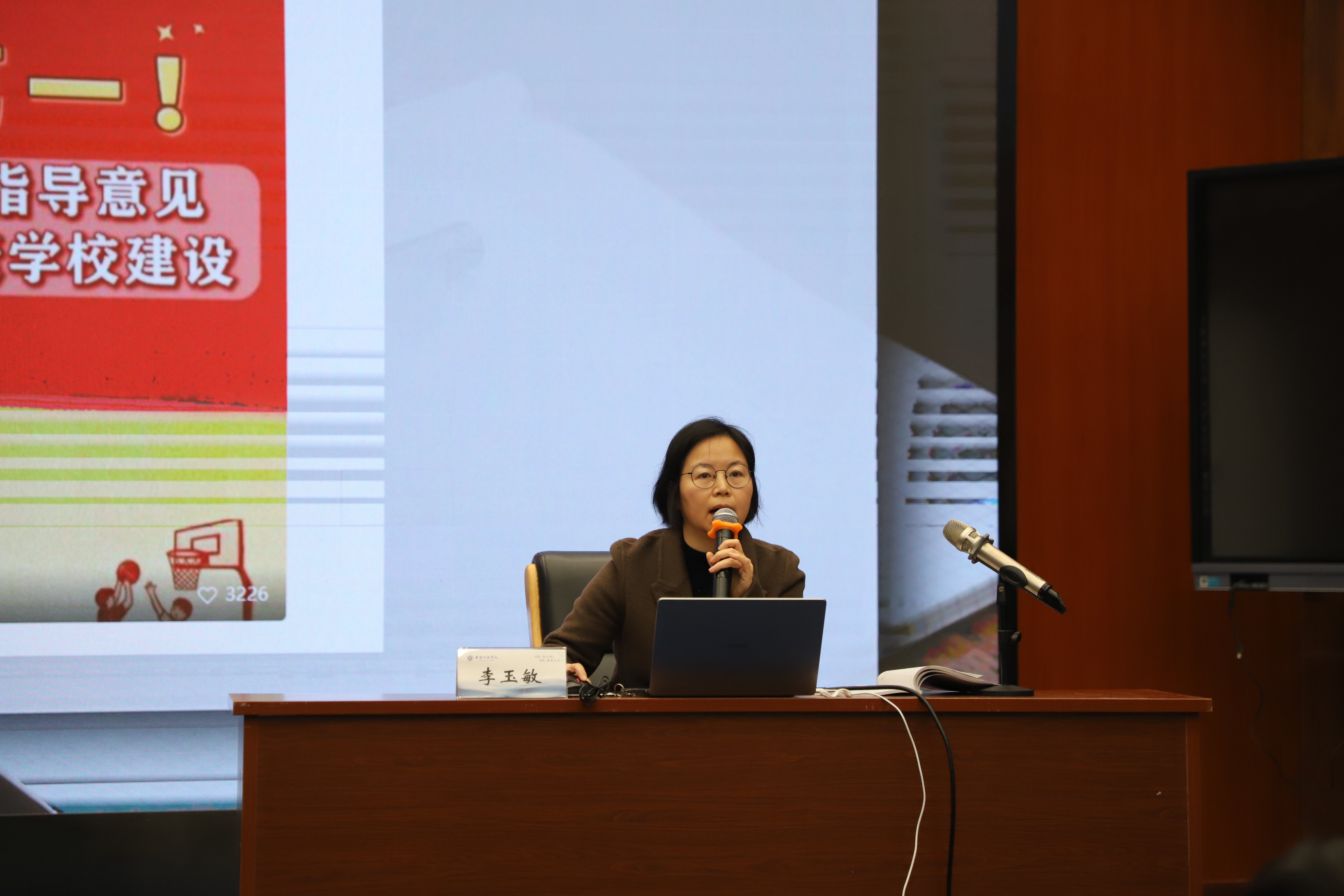 李玉敏副校长以“按常识做教育”为核心,开展师德师风建设专题讲座。她紧扣教育部“健康第一”工作部署,从学生身心健康保障、教师职业行为准则、校园安全体系建设三大维度展开,深入解读《新时代中小学教师职业行为十项准则》,明确师德师风的底线红线,结合相关法律法规强调教育要回归育人本真,以完整的视野看见每一个孩子,以温暖的关系滋养每一次成长。