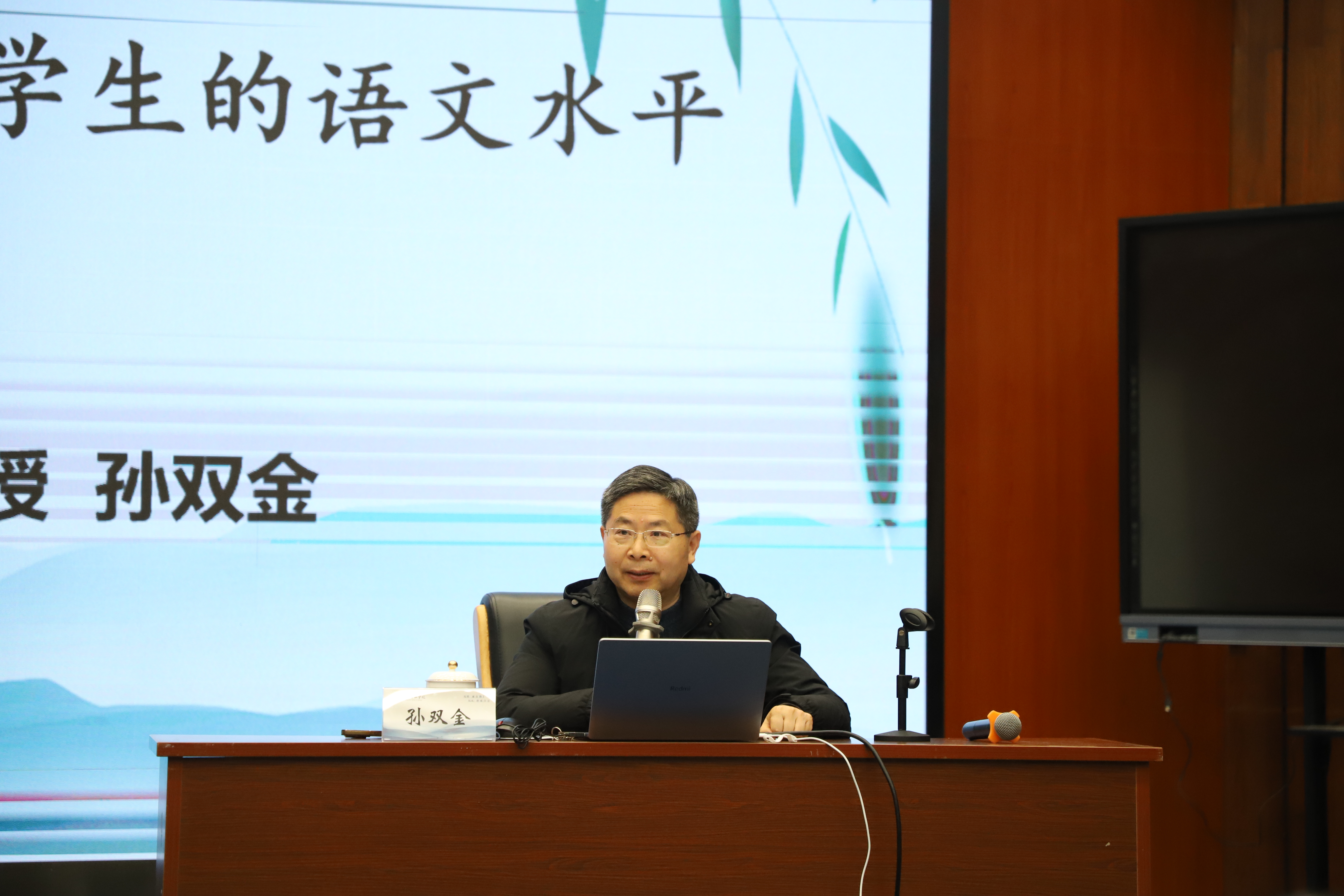孙双金校长带来“12岁以前的语文”专题讲座。孙校长以一个六岁的小女孩视频导入,提出小学阶段的语文应该以国学经典、诗歌经典、儿童文学经典为核心的体系,同时让全体老师思考应该办什么样的教育,培养什么样的人才,作为现代教师应该抬头看世界,跟踪新技术发展,多读书,正如孙校长提出来的“‘书’高人为峰”,站在巨人的肩膀上,对老师们提出了殷切的希望。