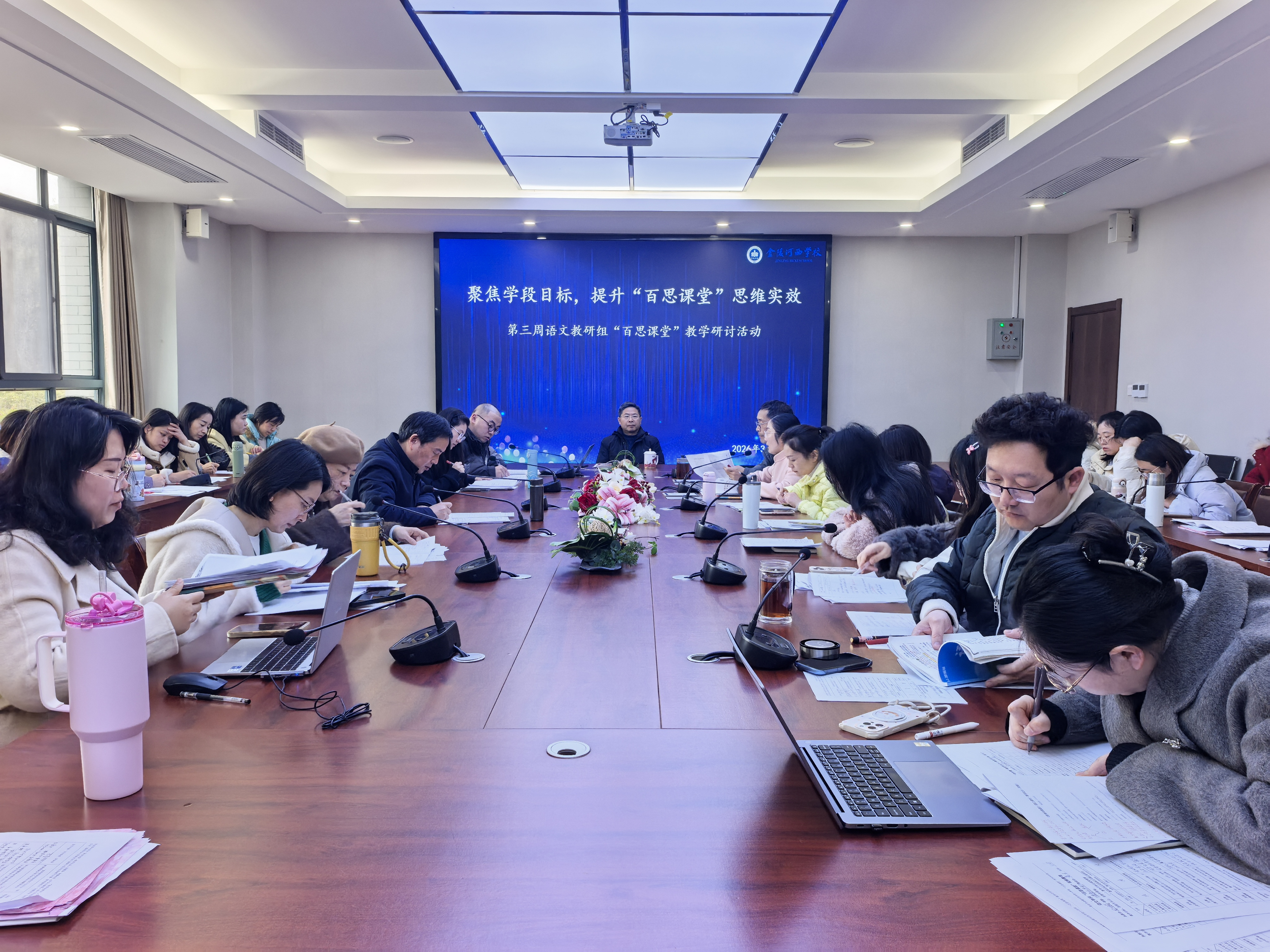 春启新程,研思致远。3月18日上午,语文教研组新学期“百思课堂”专题教研活动顺利举办。本次活动以“聚焦学段目标,提升‘百思课堂’思维实效”为主题,严格落实学校“周三熄屏日”教学要求,全体语文教师齐聚一堂,以课为媒,共探“学为中心”的课堂样态。